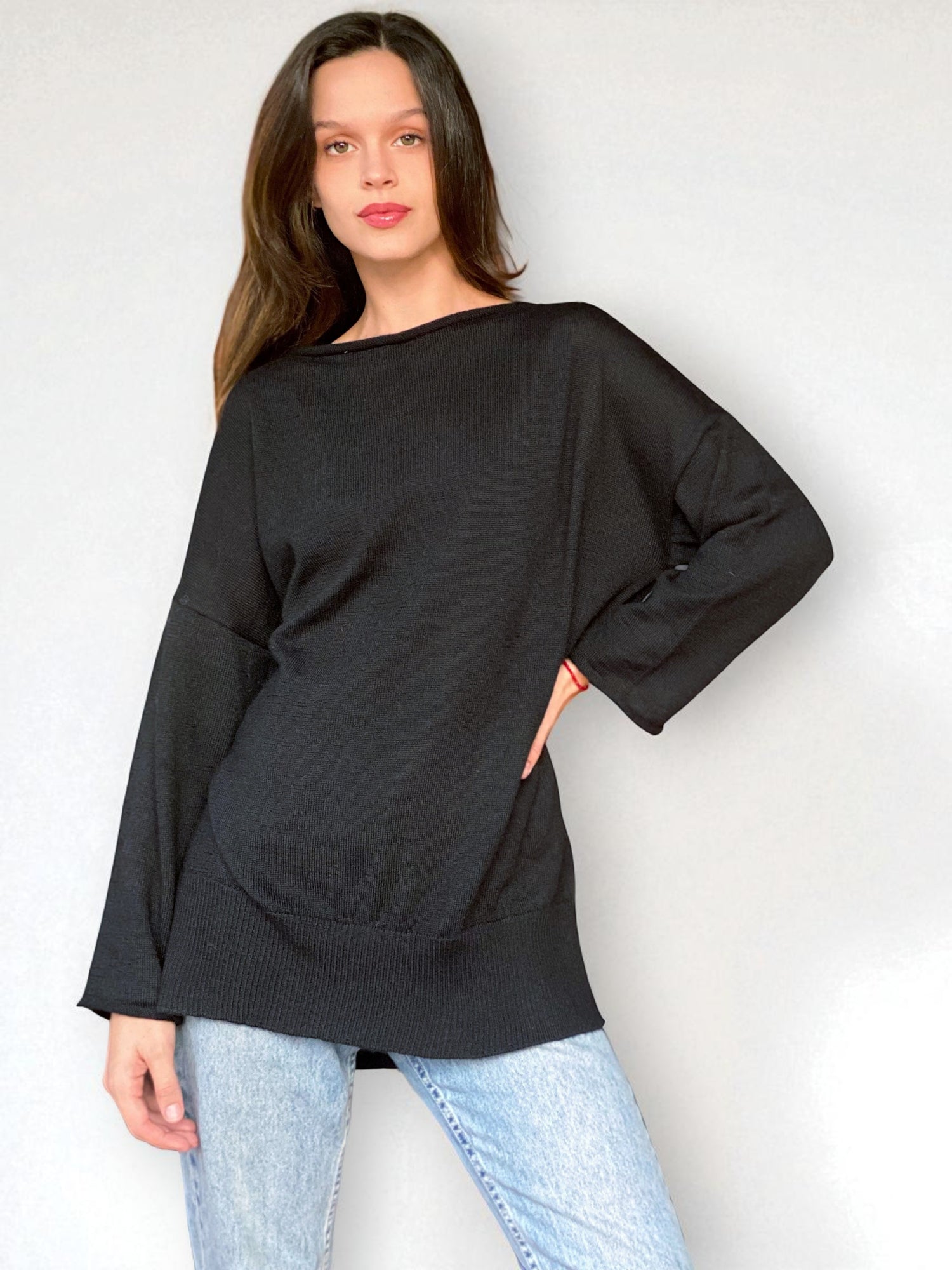 De corte amplio, cuello bote y manga abullonada en el puño crea un efecto de volumen aportando un efecto especial a cualquier look.