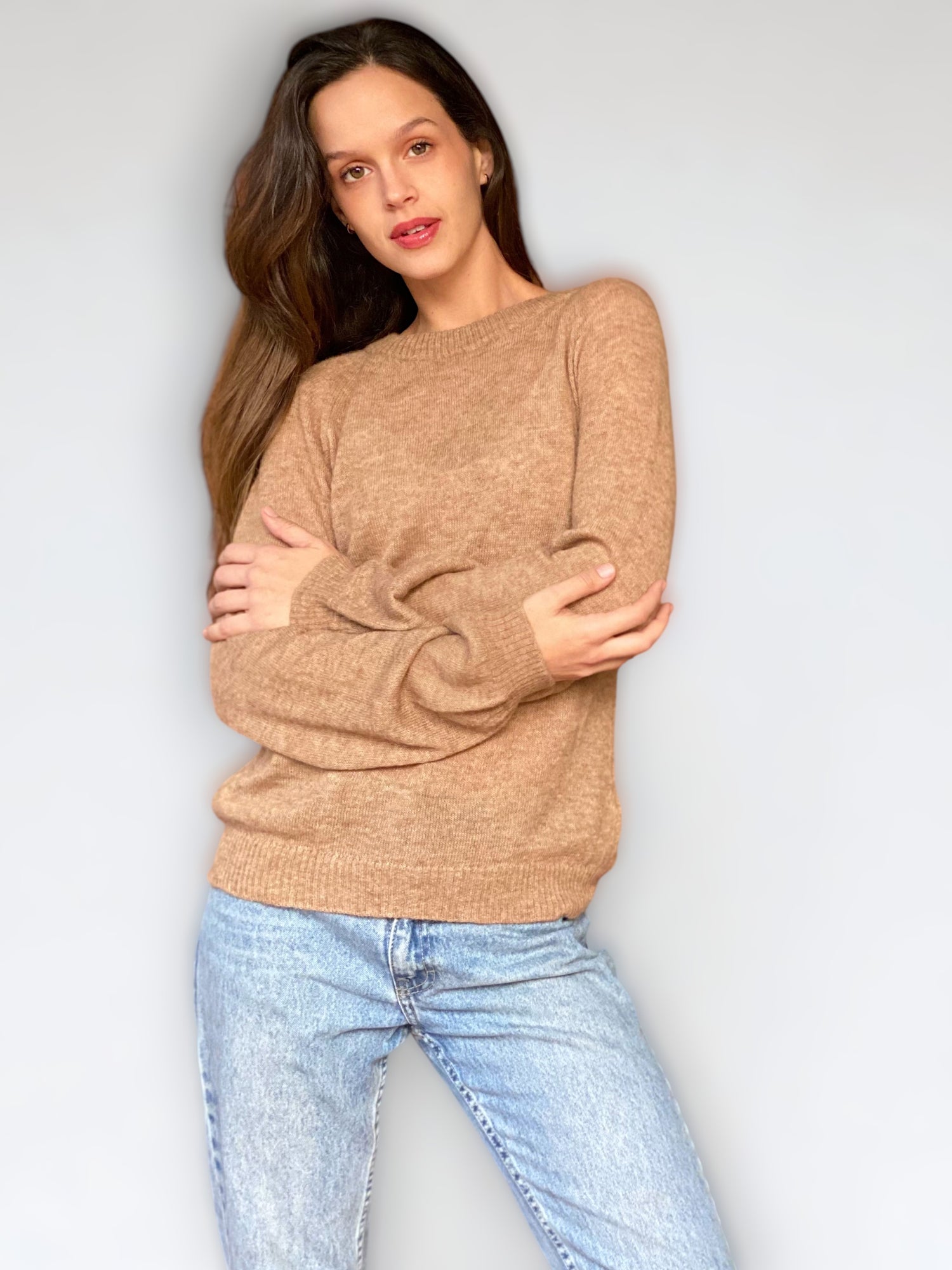Es una prenda esencial reinterpretada. Tejida con fibra 100% baby alpaca, destaca por su suavidad, ligereza y calidez natural. Su diseño clásico de cuello redondo se combina con mangas ranglan que aportan comodidad y un calce fluido en hombros. Un básico tanto para hombres como mujeres que no busca llamar la atención, pero que difícilmente pasa desapercibido.