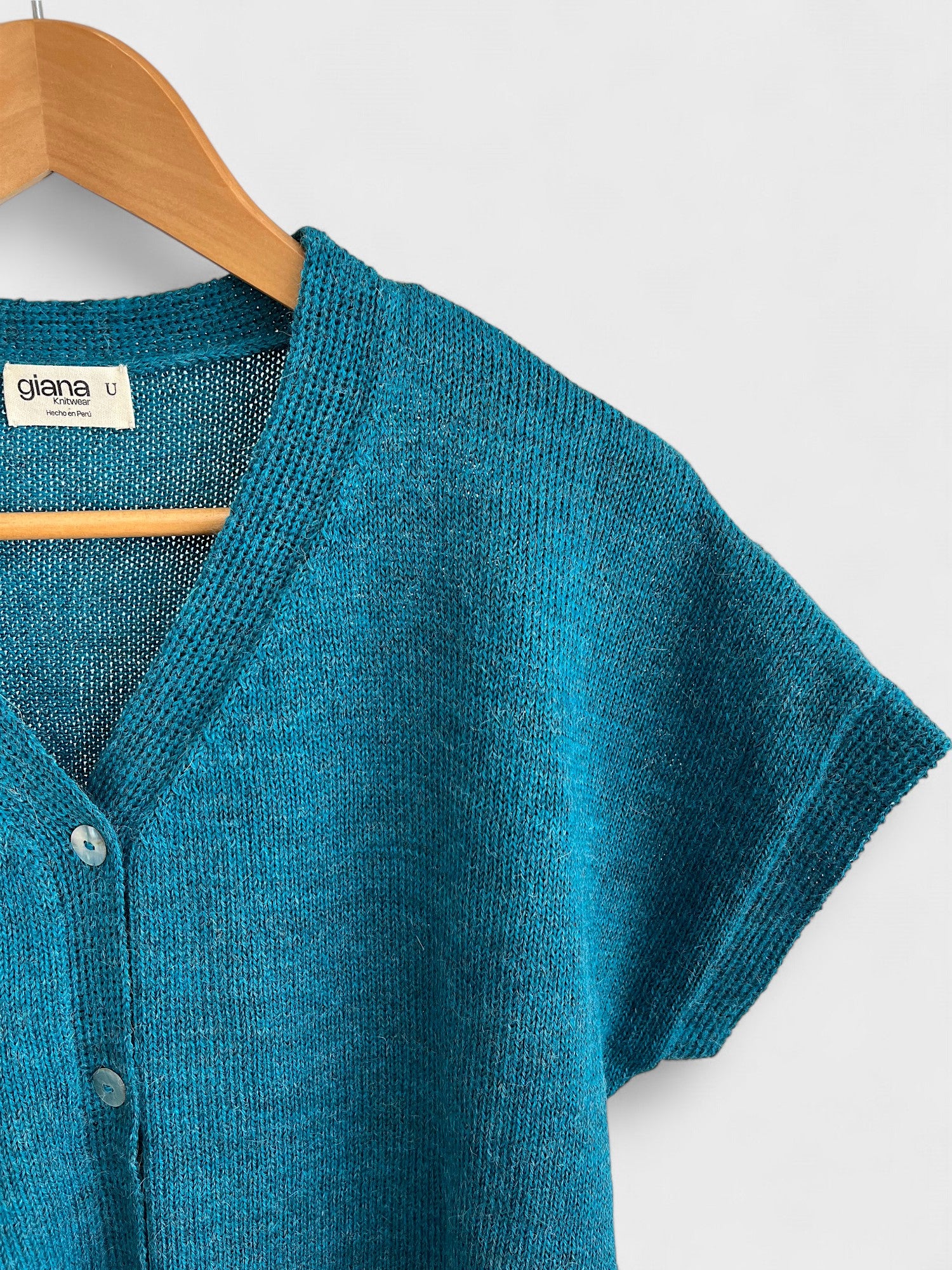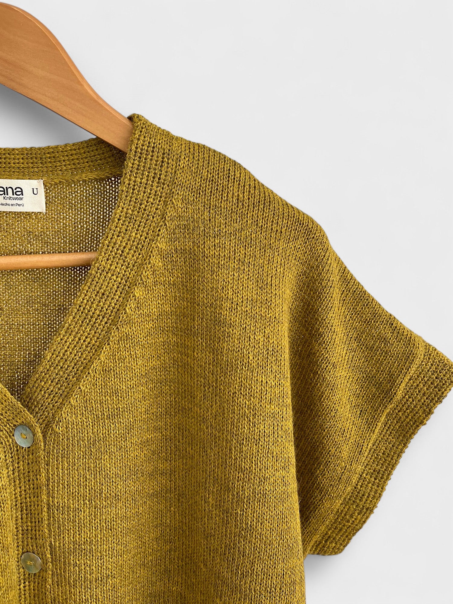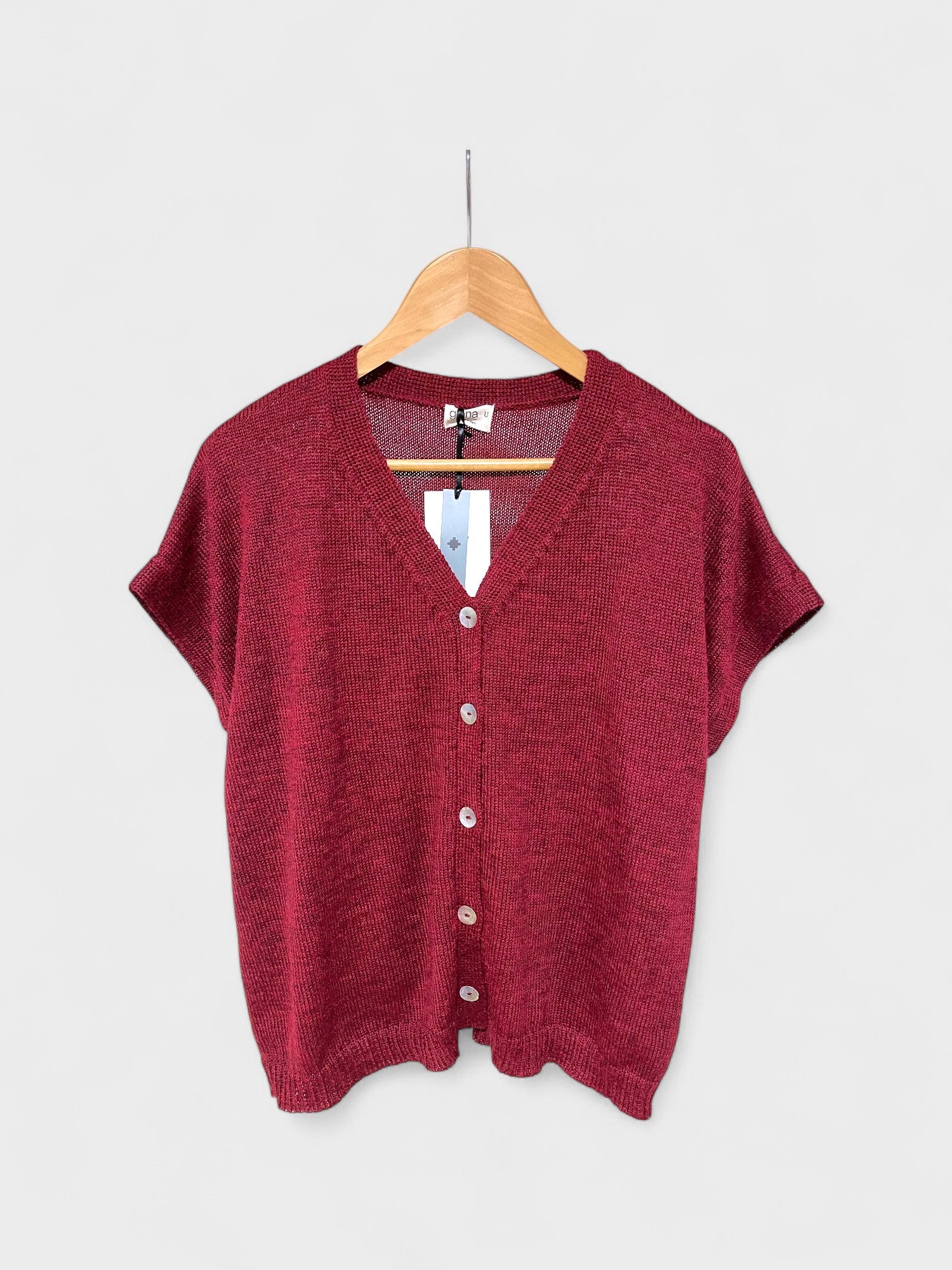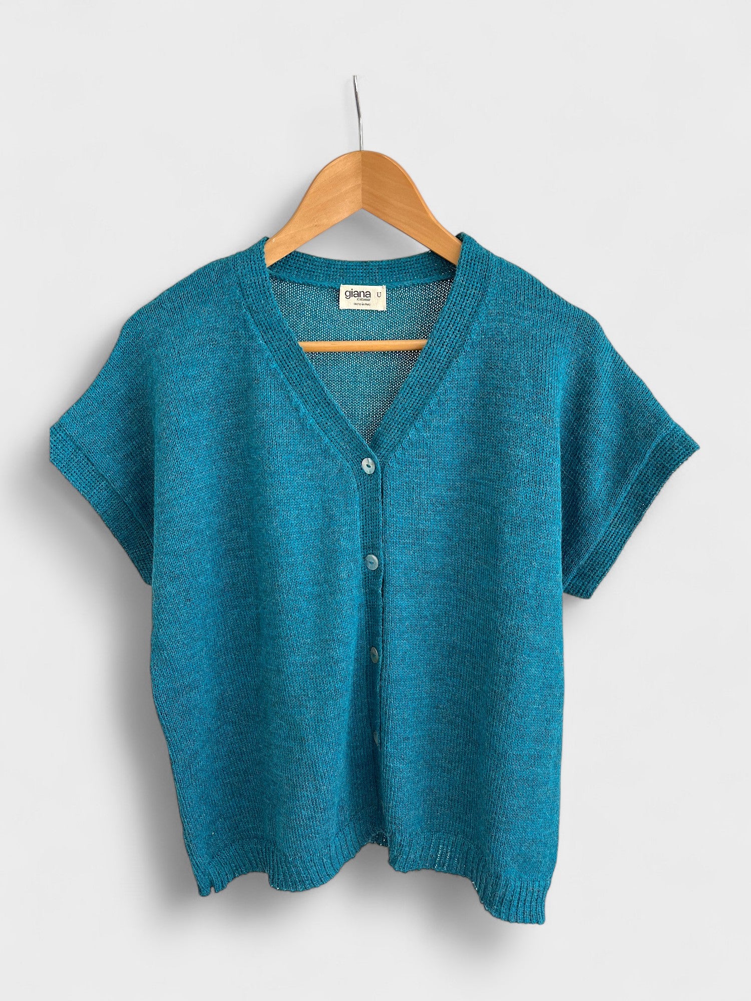 Un clásico reeditado con el sello GIANA. El chaleco Atria está tejido en Baby Alpaca pura, con una caída suave y un tacto ligero. Su escote en V y botones de nácar aportan un aire atemporal, mientras que su silueta amplia permite múltiples formas de uso: solo, como top, o sobre una blusa como en la imagen.