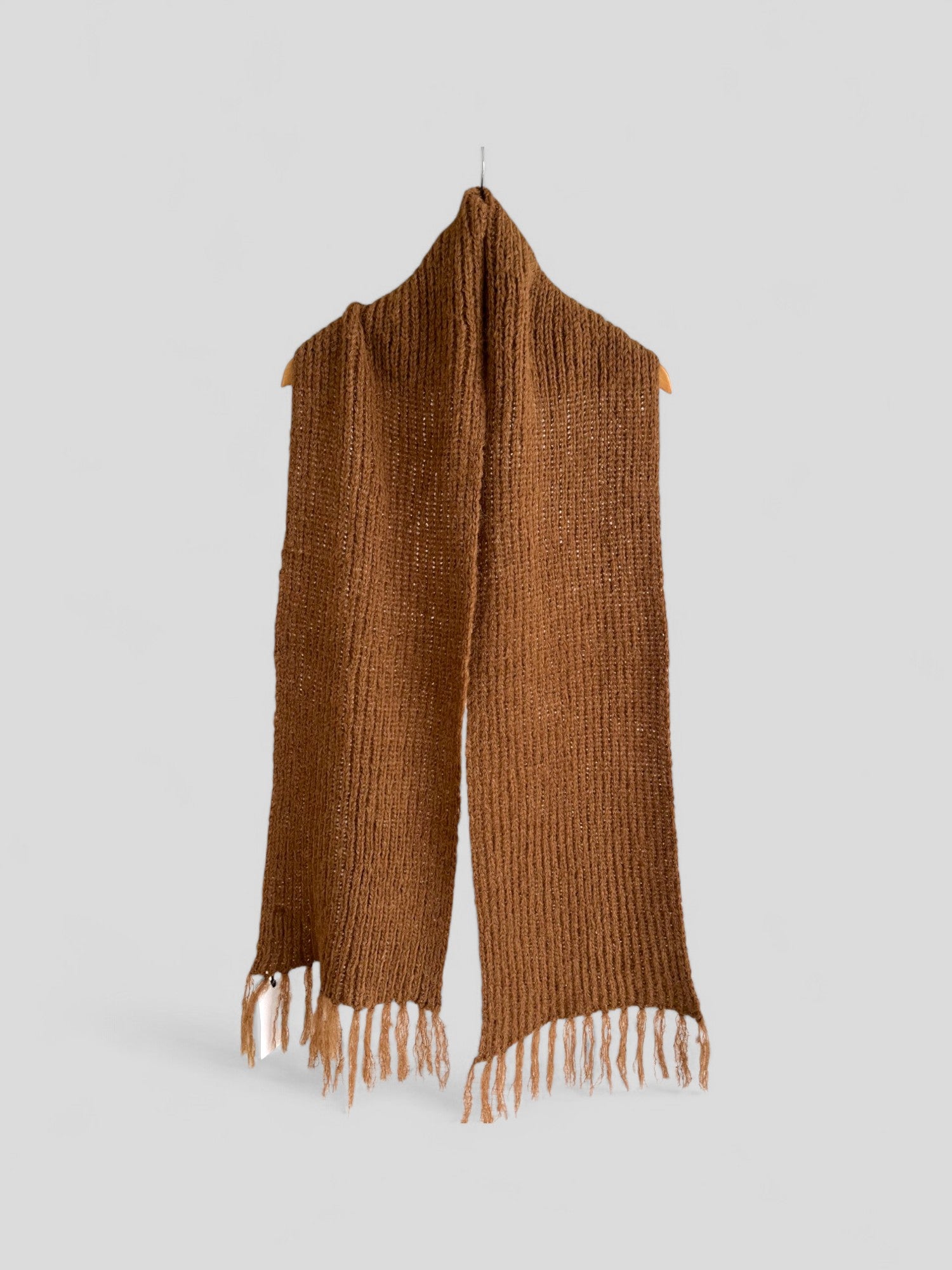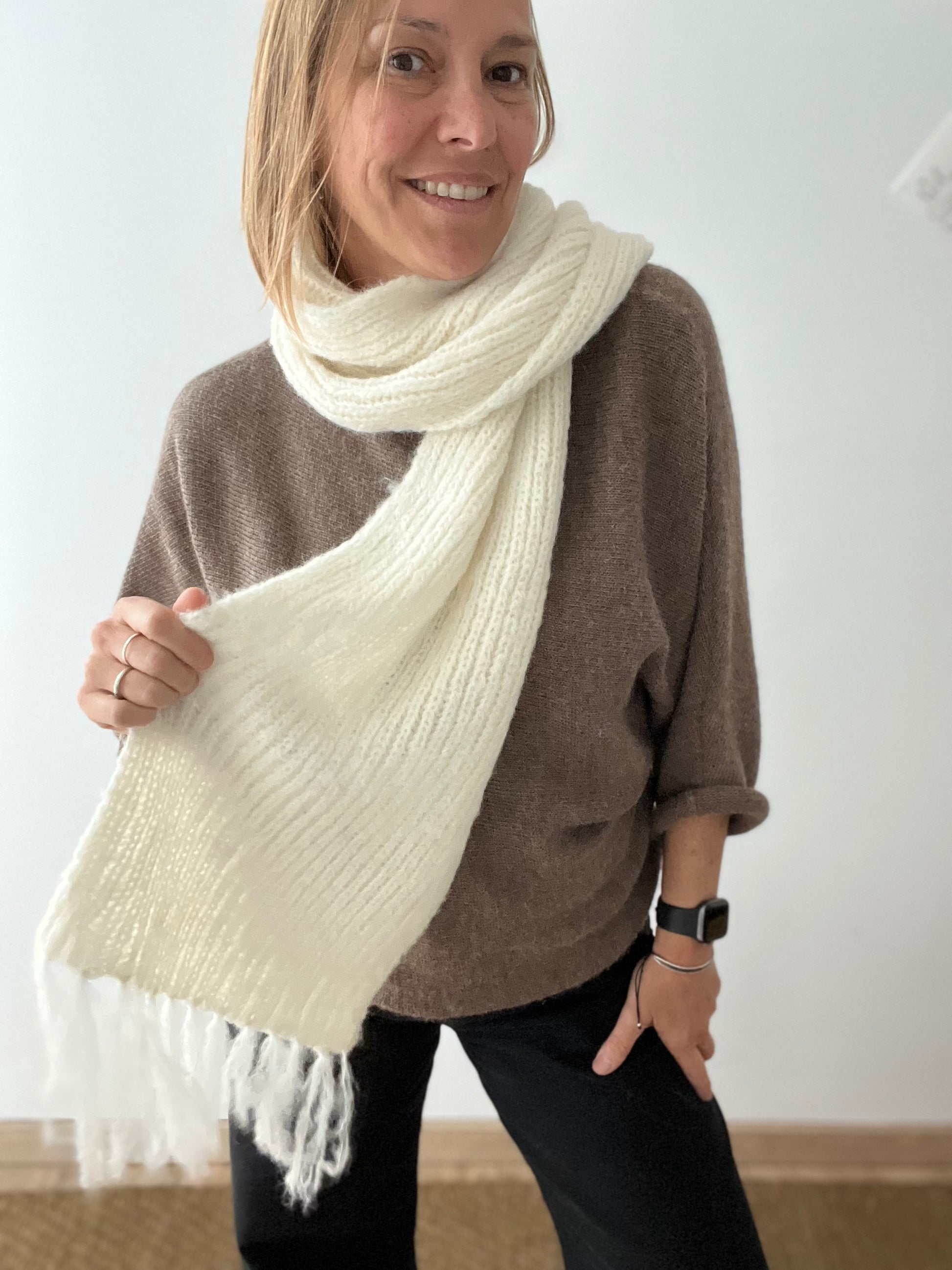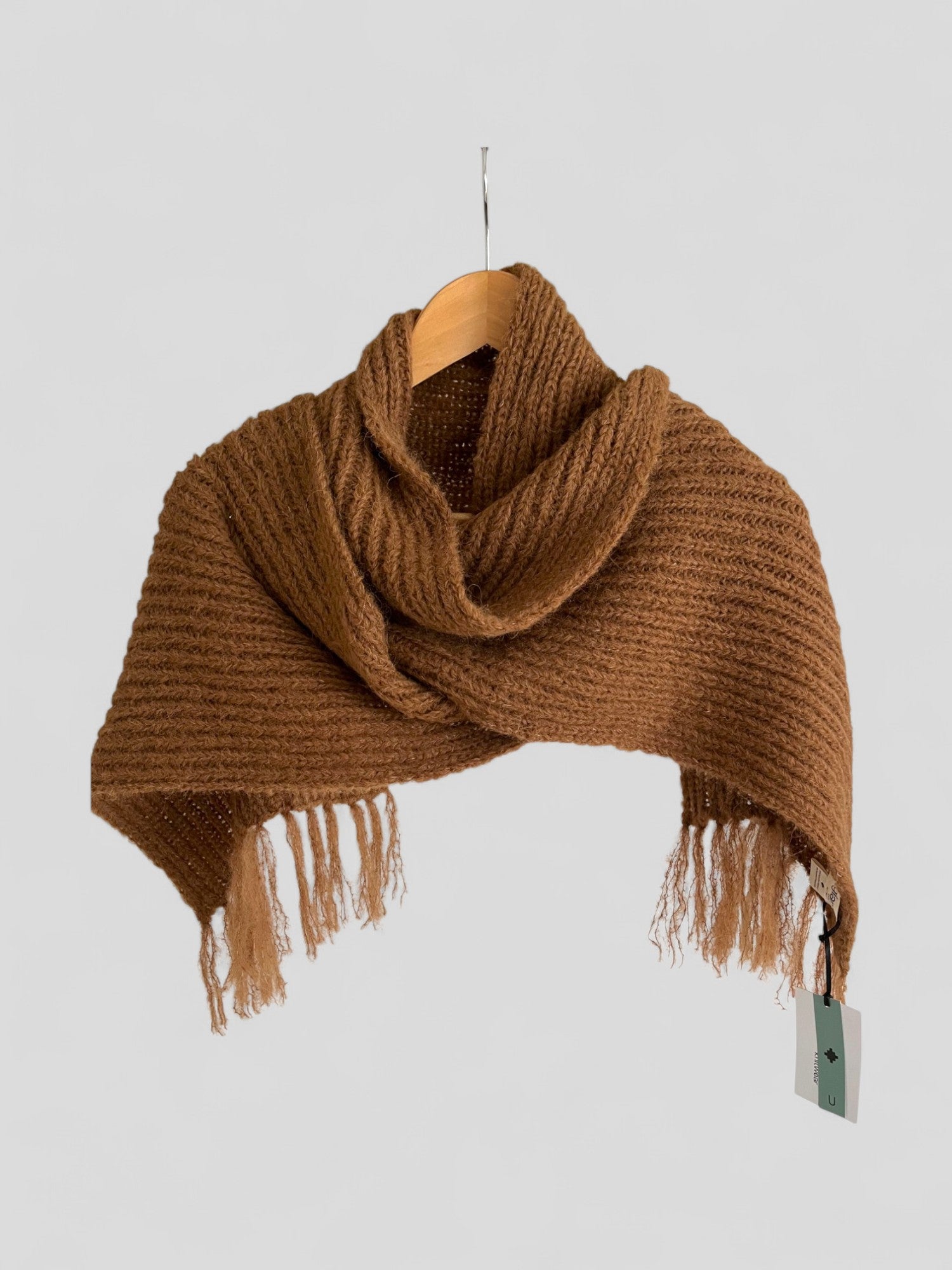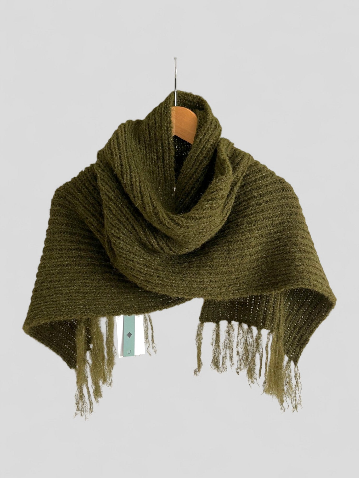 Tejida en Alpaca con un pequeño porcentaje de poliamida reciclada que aporta textura liviana y una suavidad envolvente, Pandora es nuestra interpretación contemporánea de la clásica chalina invernal.