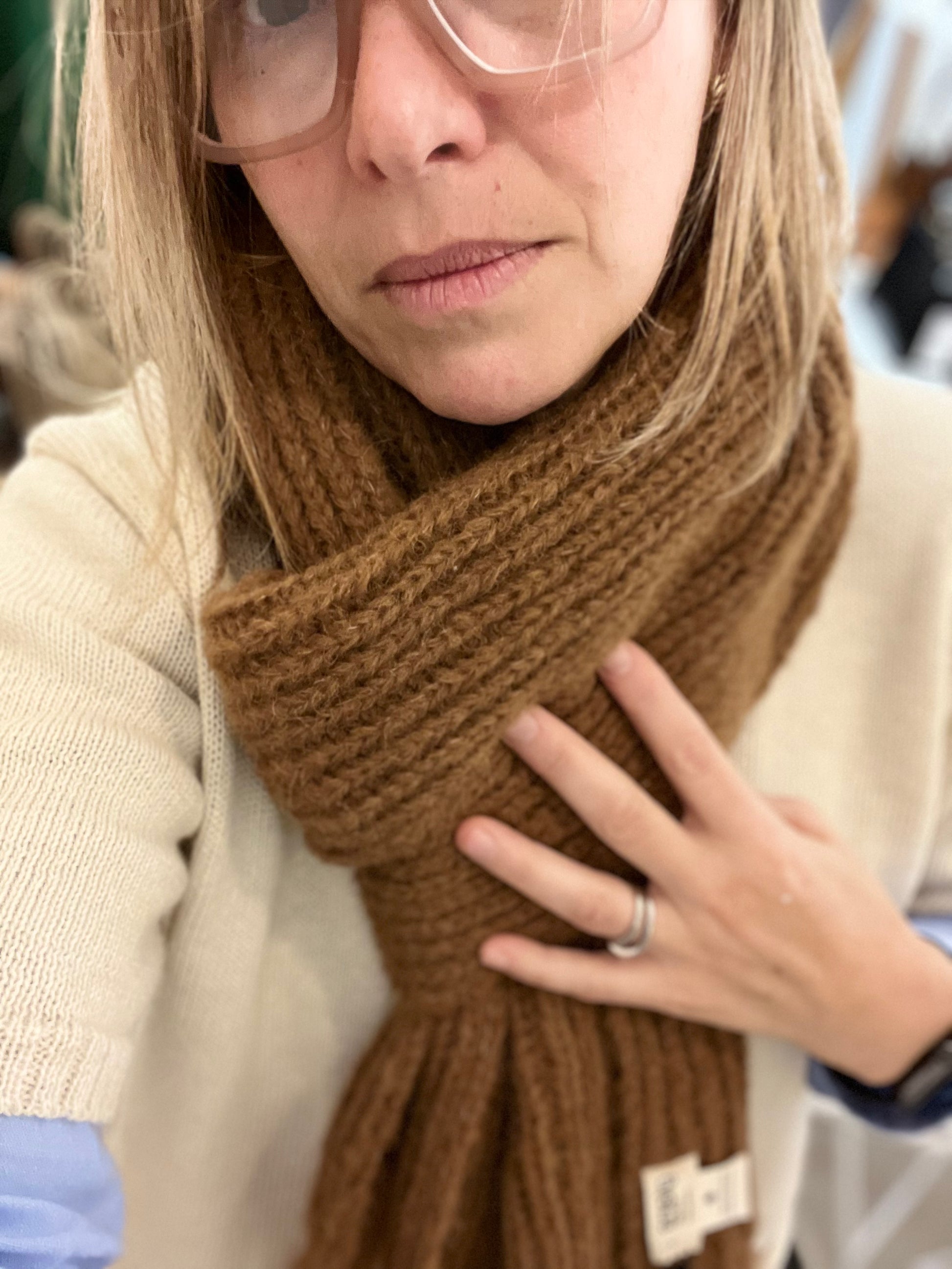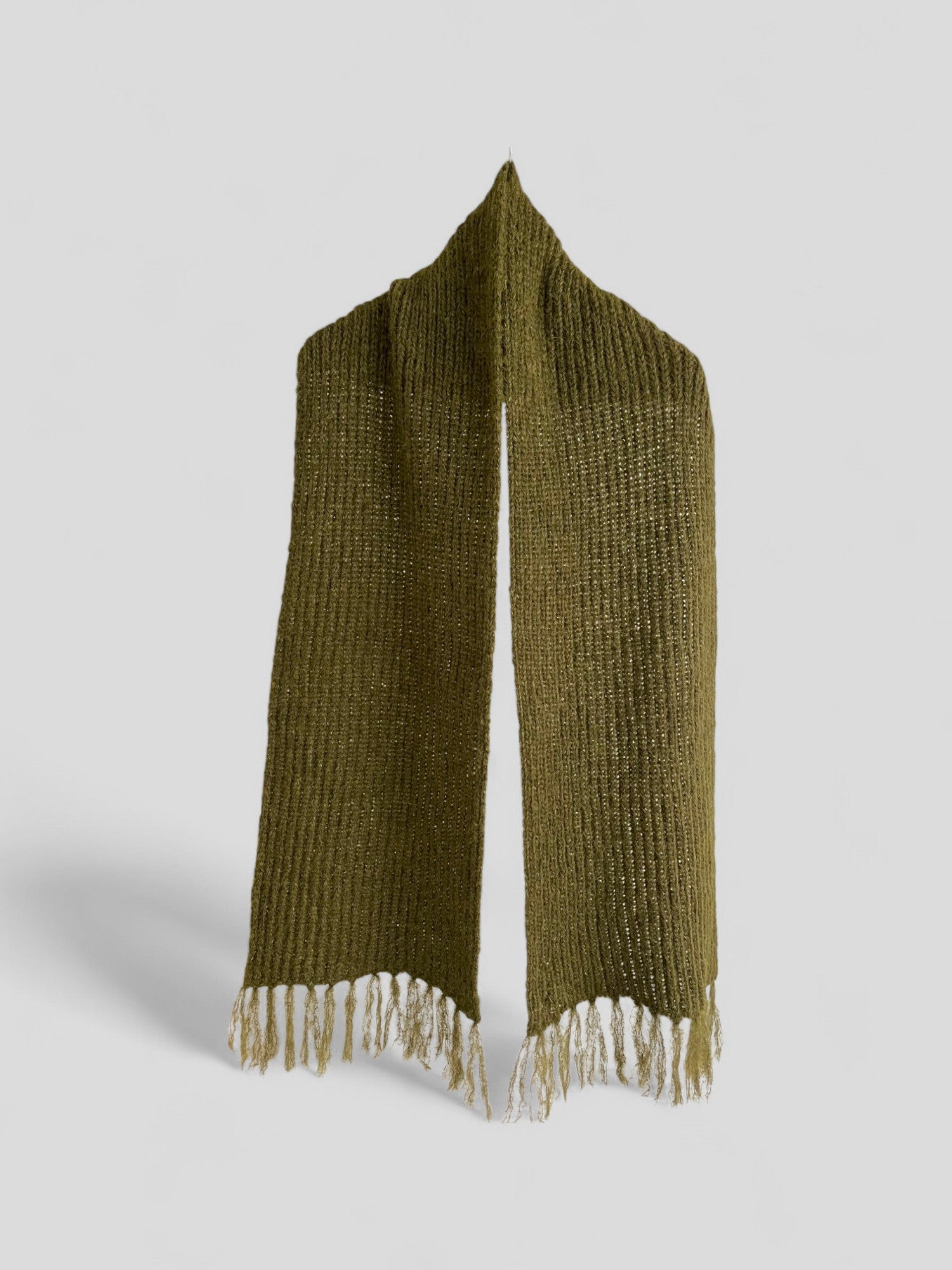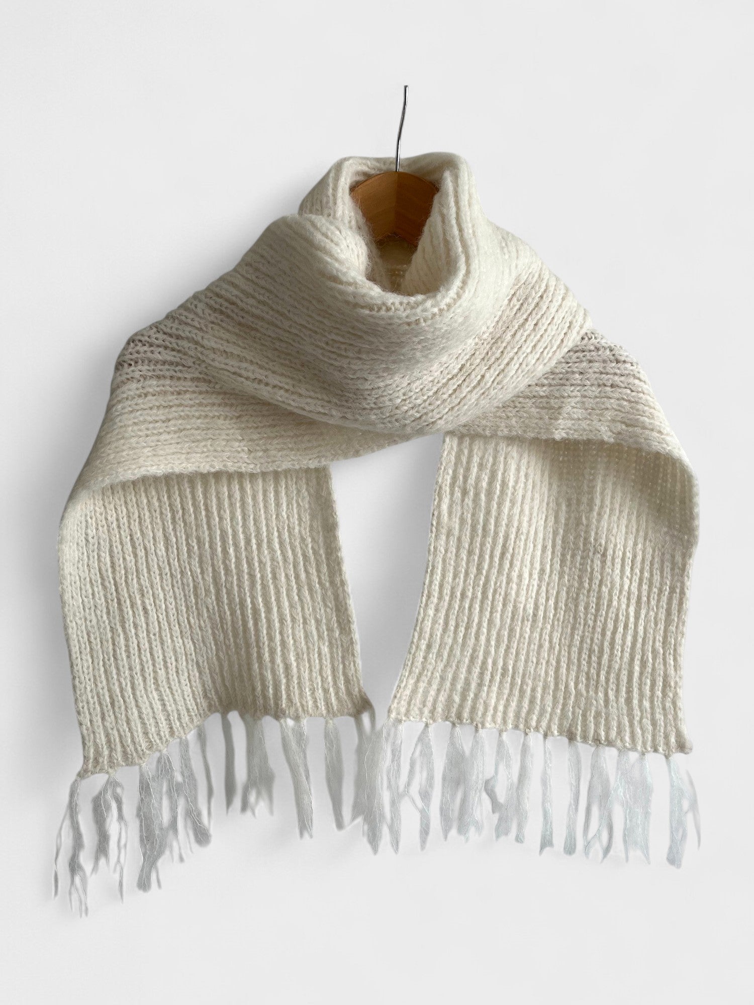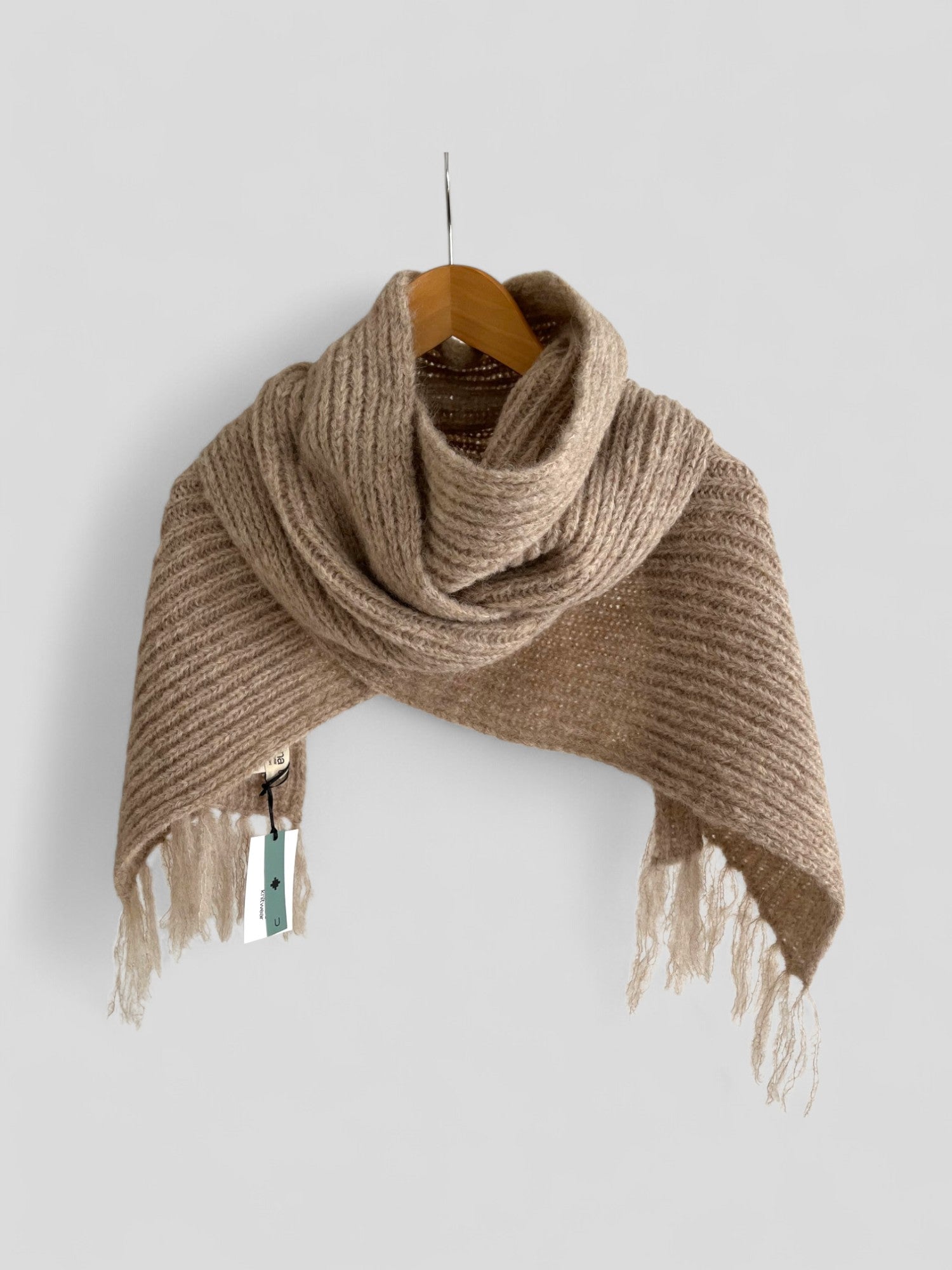 Tejida en Alpaca con un pequeño porcentaje de poliamida reciclada que aporta textura liviana y una suavidad envolvente, Pandora es nuestra interpretación contemporánea de la clásica chalina invernal.