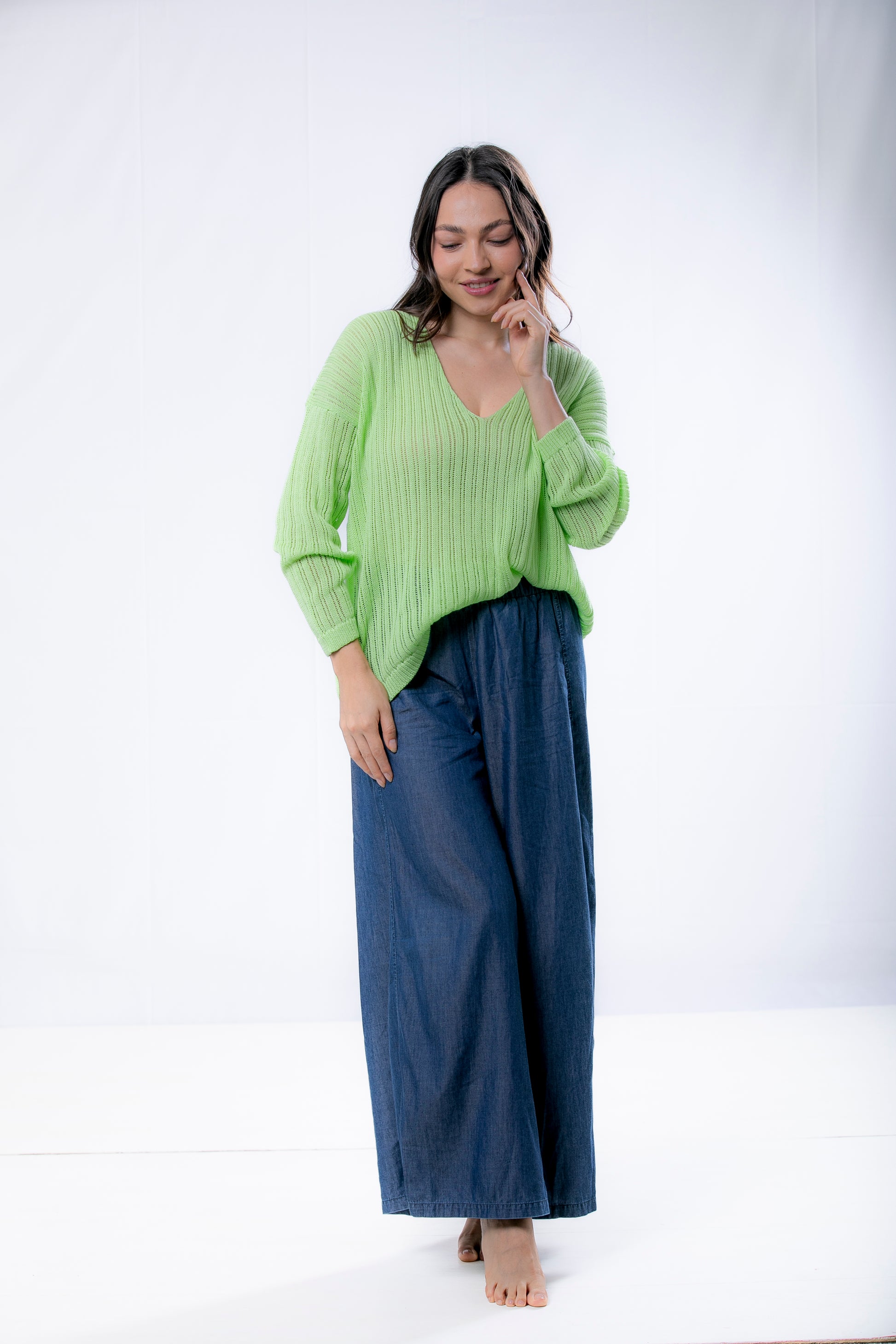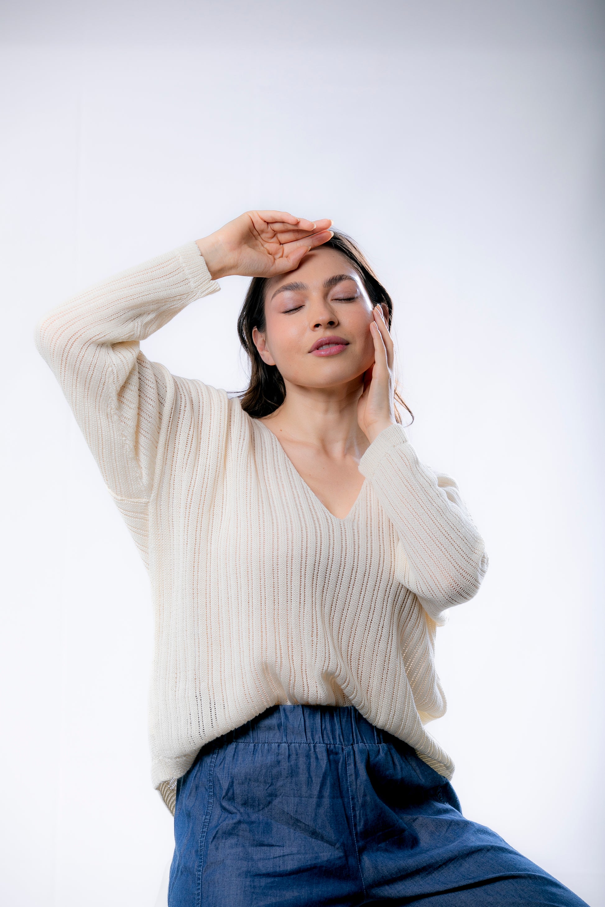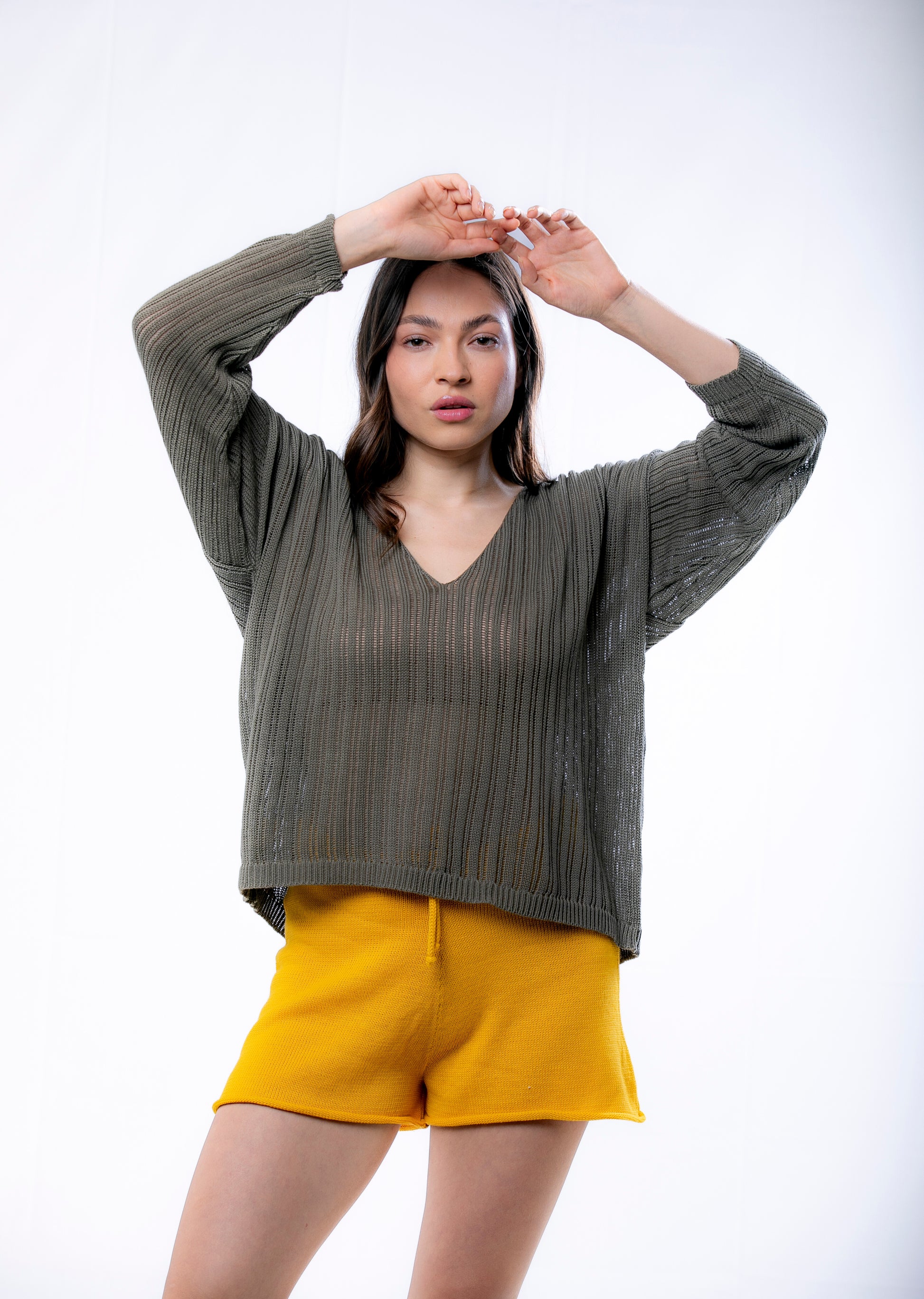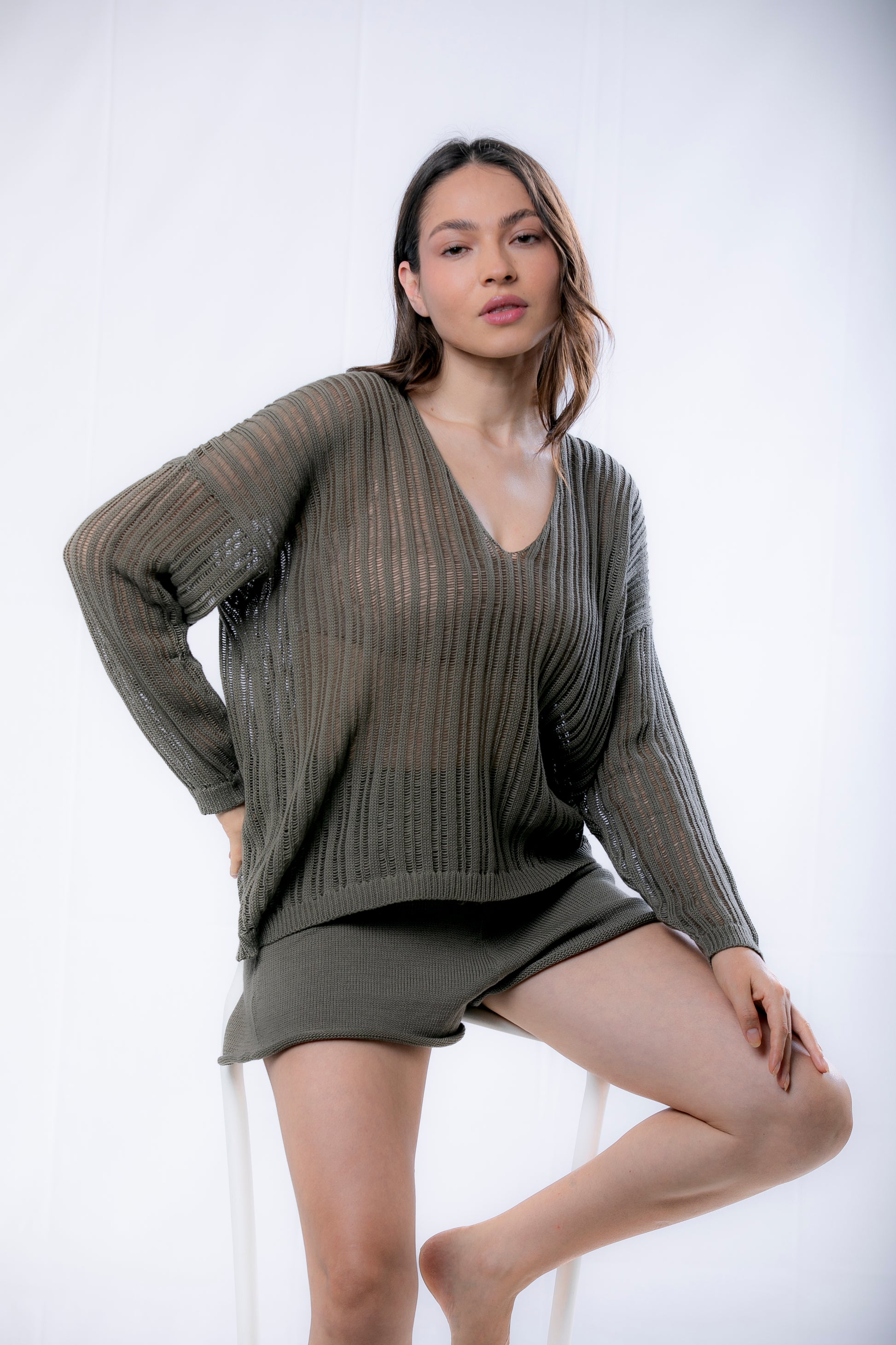 El diseño de la Chompa Calisto incluye un elegante cuello en V que complementa su estructura holgada, proporcionando un fit relajado pero refinado que se adapta a cualquier tipo de cuerpo. Esta versatilidad la convierte en la prenda ideal para una variedad de ocasiones, desde un día casual en la ciudad hasta una reunión informal.