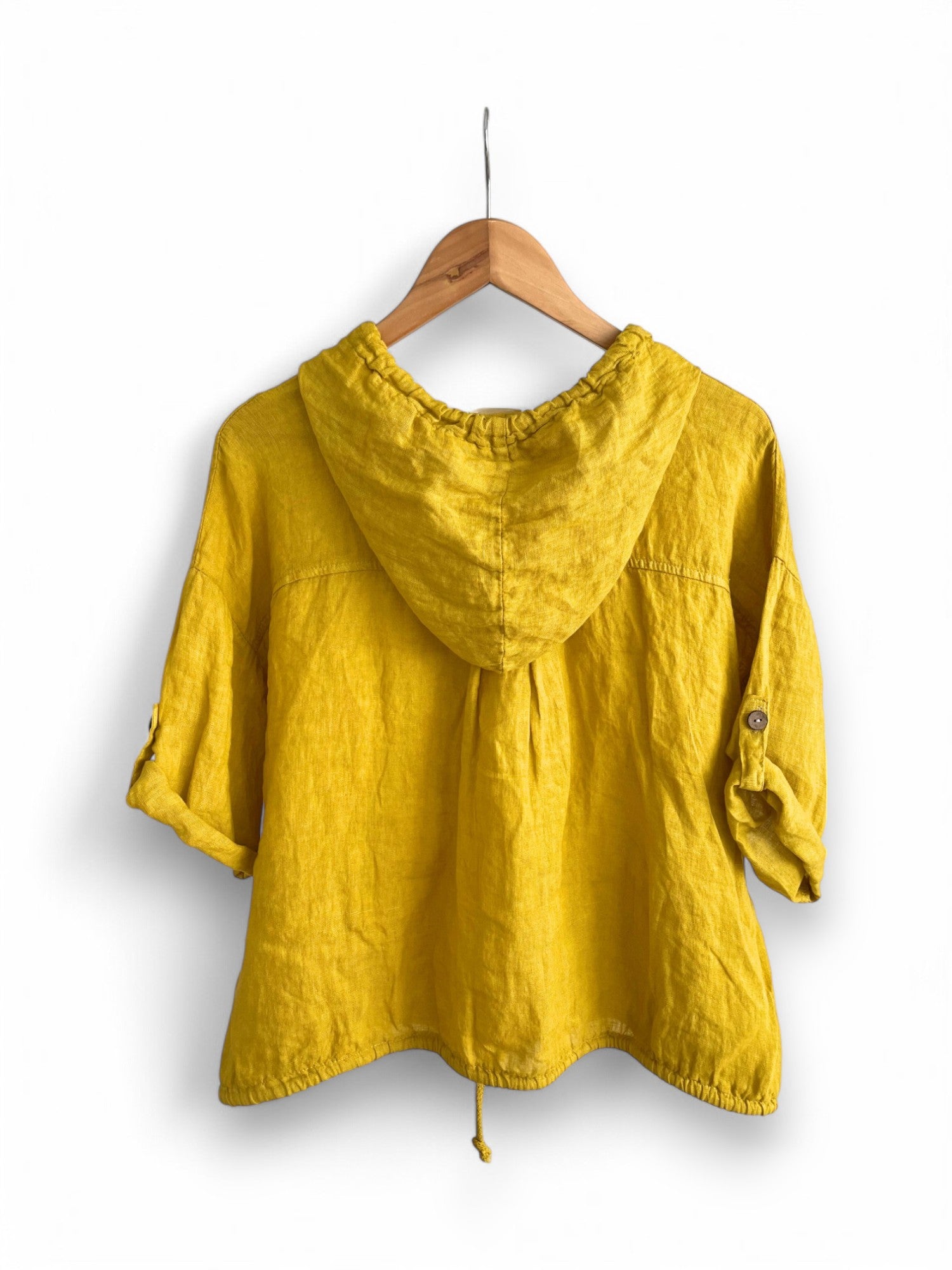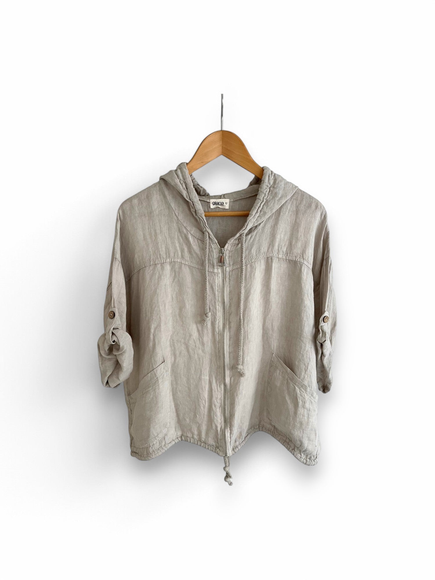 Diseñada para aportar estructura sin sacrificar ligereza, esta chaqueta de lino es la definición de sencillez sofisticada. Confeccionada en Italia y cuidadosamente seleccionada por Giana Complementos, combina una silueta relajada con la textura fresca y sutilmente rústica del lino natural. Es una prenda atemporal que fluye con facilidad entre estaciones, perfecta para superponer sobre nuestros tejidos en algodón orgánico. Su diseño versátil y funcional la convierte en una aliada indispensable para elevar cualquier look con naturalidad y armonía.