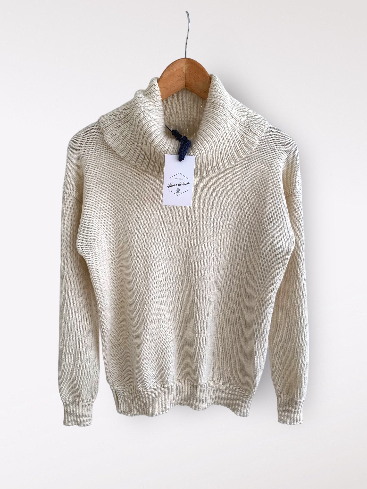 La Chompa Cisne destaca por su sutileza y refinamiento, sumergiéndose en la belleza de la simplicidad en lugar de optar por lo ostentoso. Con un cuello alto oversize que proporciona calidez sin sentirte sofocado, y una suave caída que agrega un toque de elegancia, esta prenda de corte recto está confeccionada en un lujoso 100% Baby Alpaca.