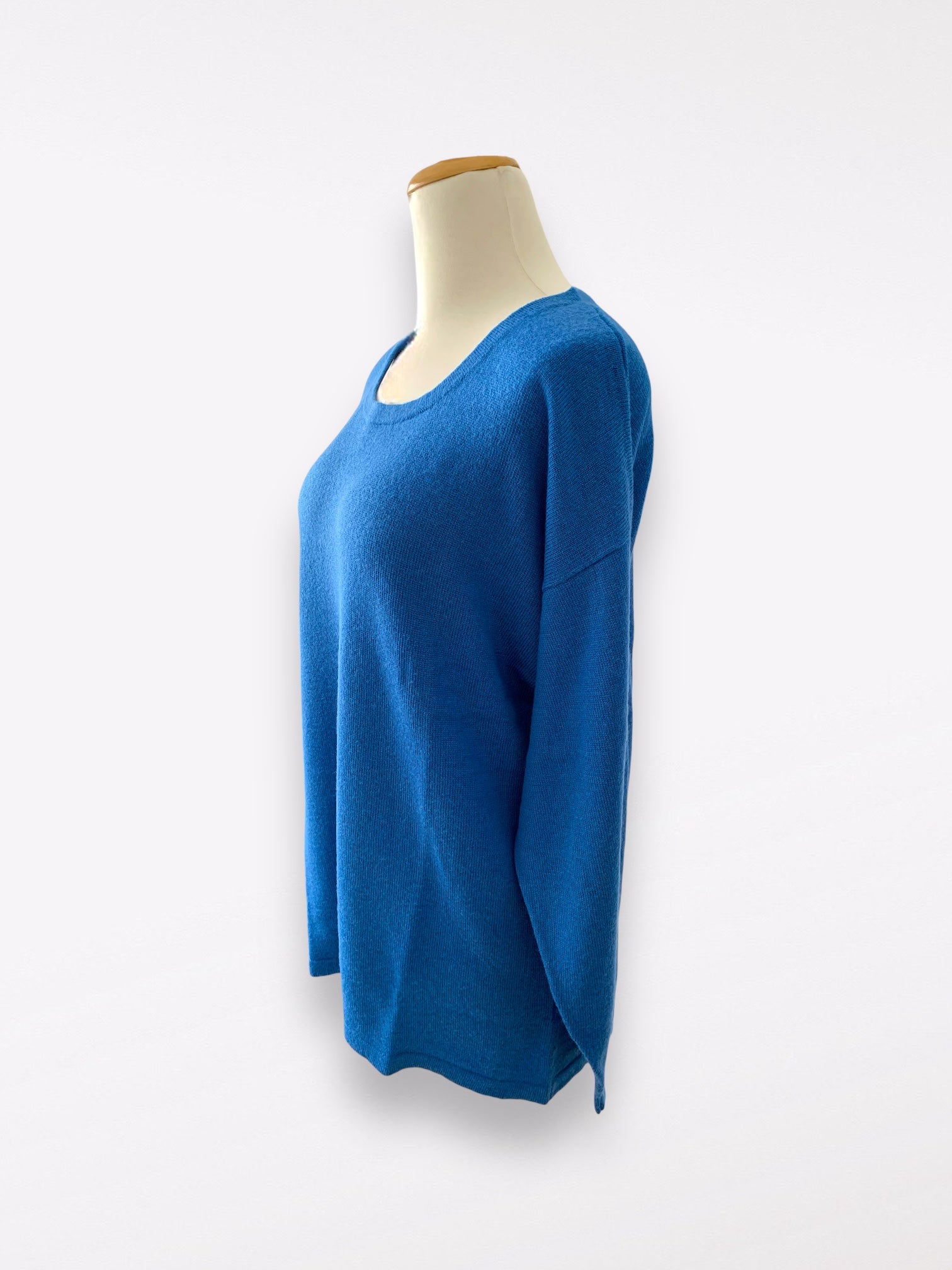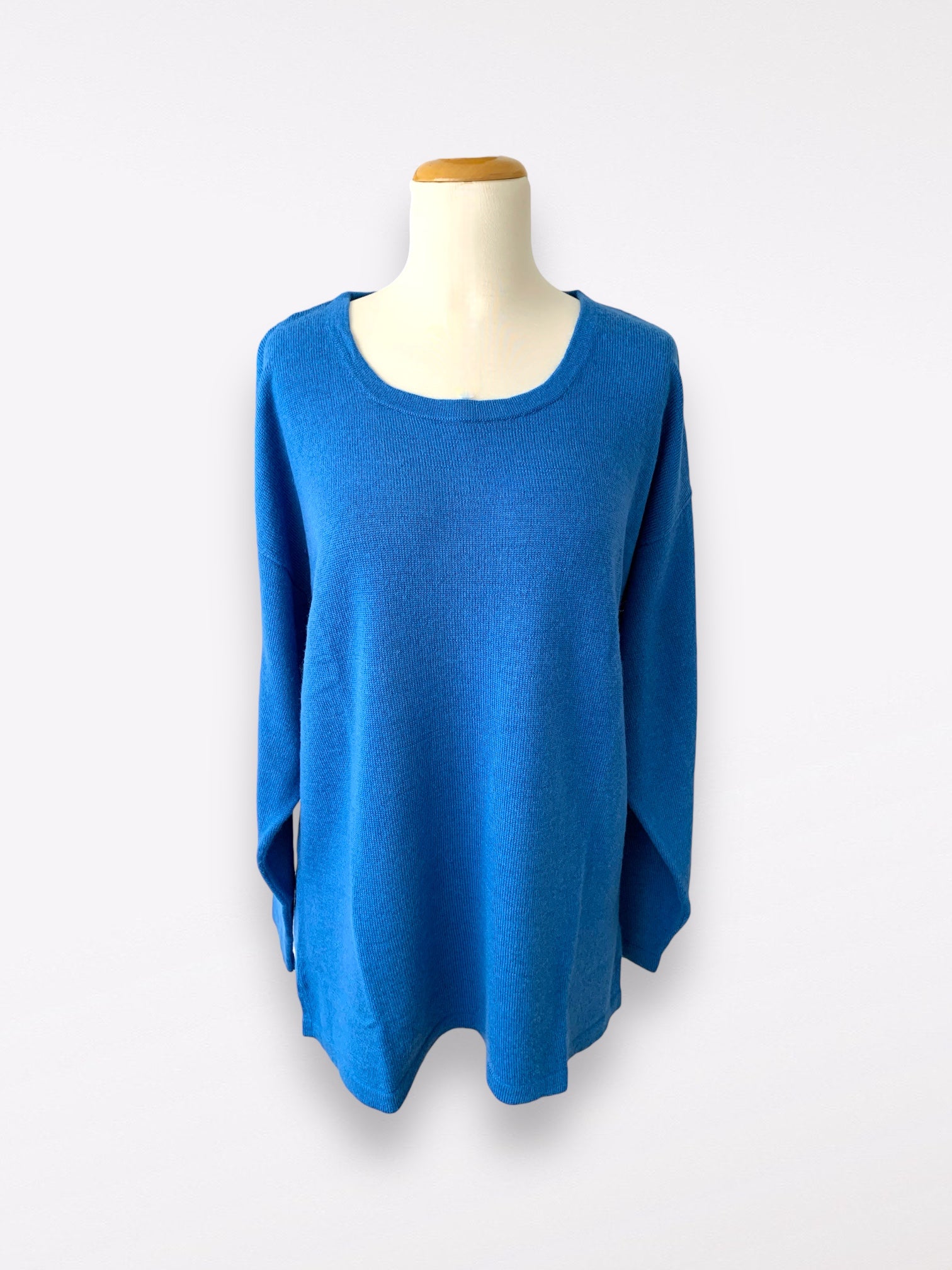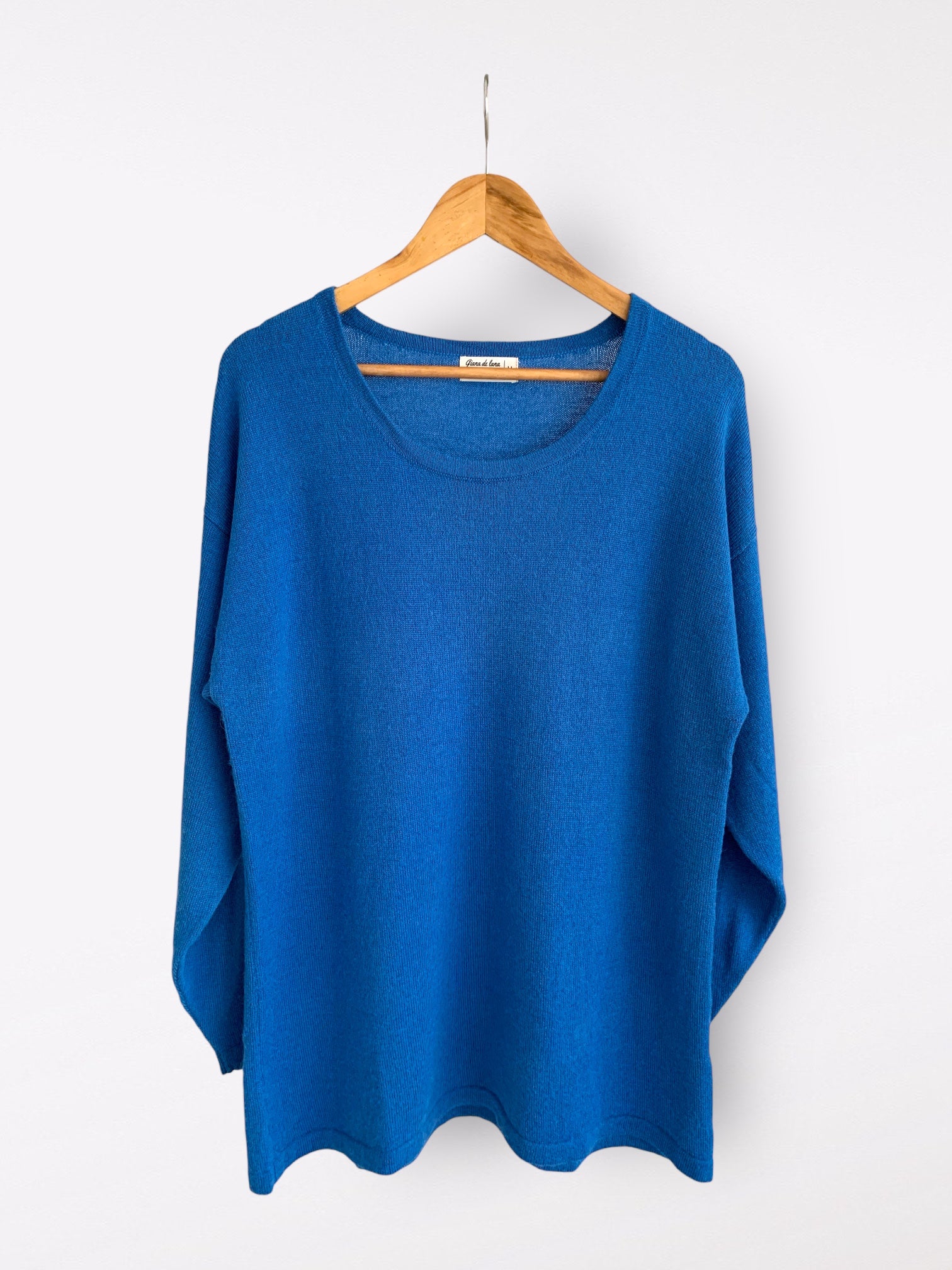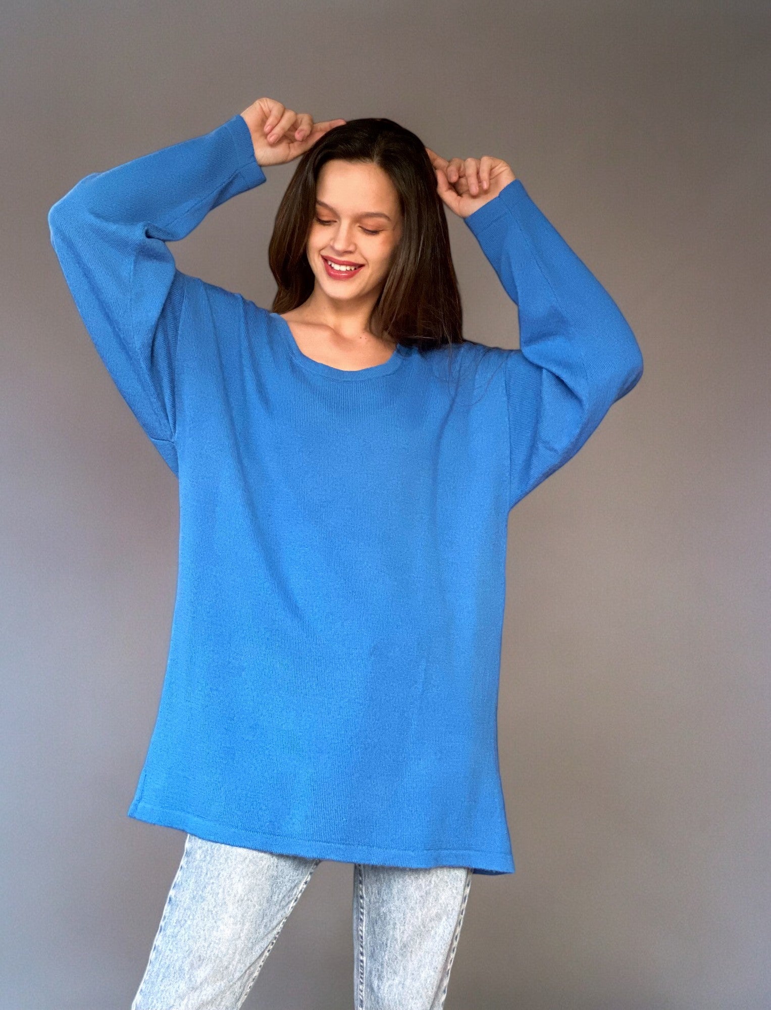 El diseño de la chompa Hydra presenta un corte relajado y un elegante color azul que captura la esencia de la modernidad y la elegancia atemporal. Su cuello redondo y las mangas largas ofrecen una silueta clásica y versátil, perfecta para una variedad de ocasiones. Además, los bordes ondulados en el dobladillo añaden un toque distintivo y dinámico al diseño general de la prenda.
