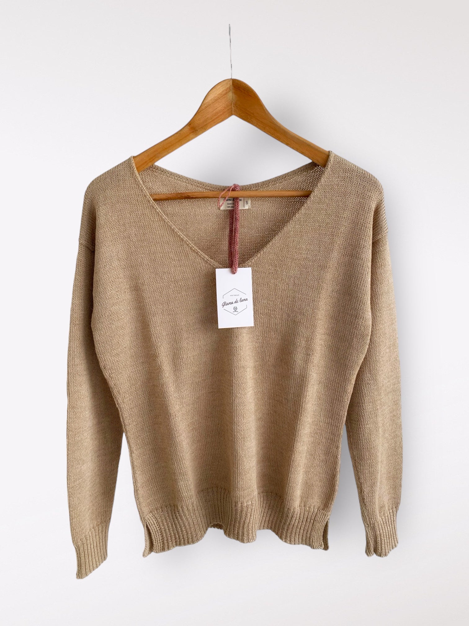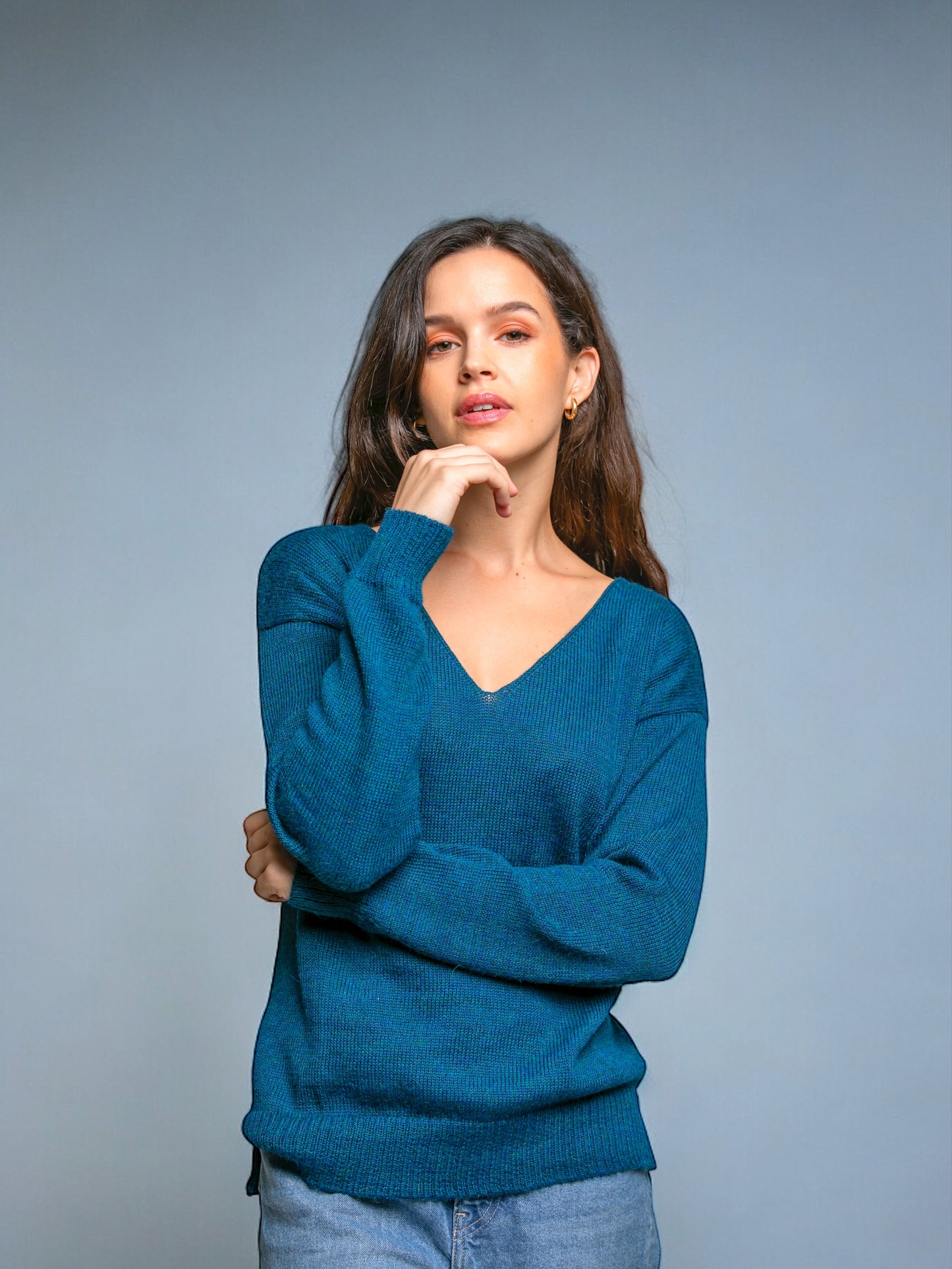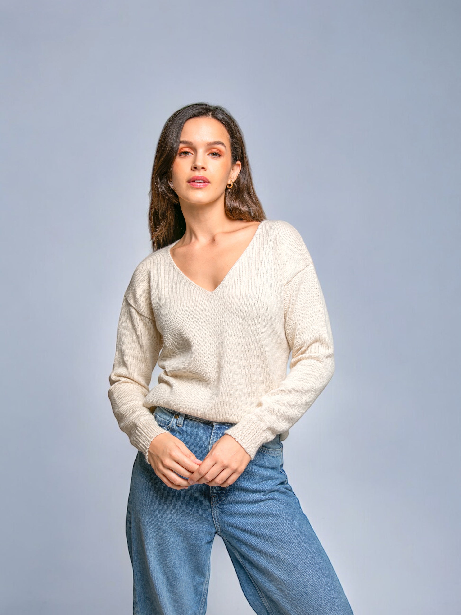Es una prenda minimalista y elegante confeccionada en 100% Baby Alpaca.Su corte entallado y cuello en V realzan la feminidad y el estilo.
