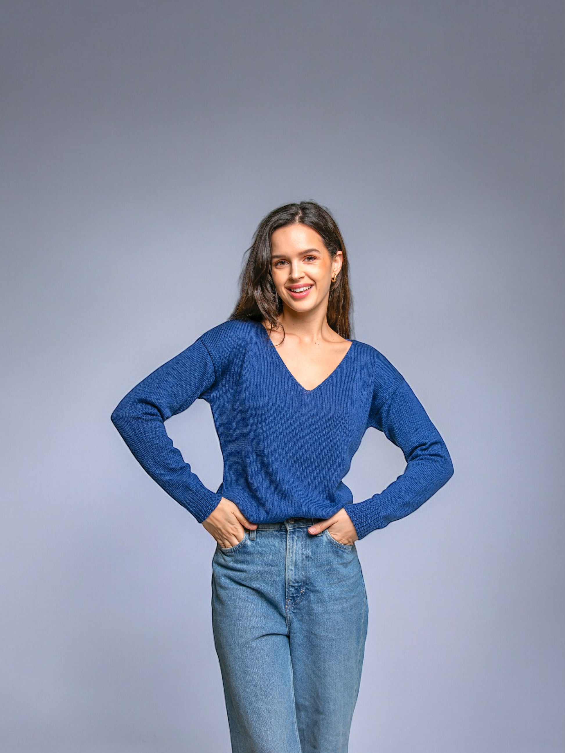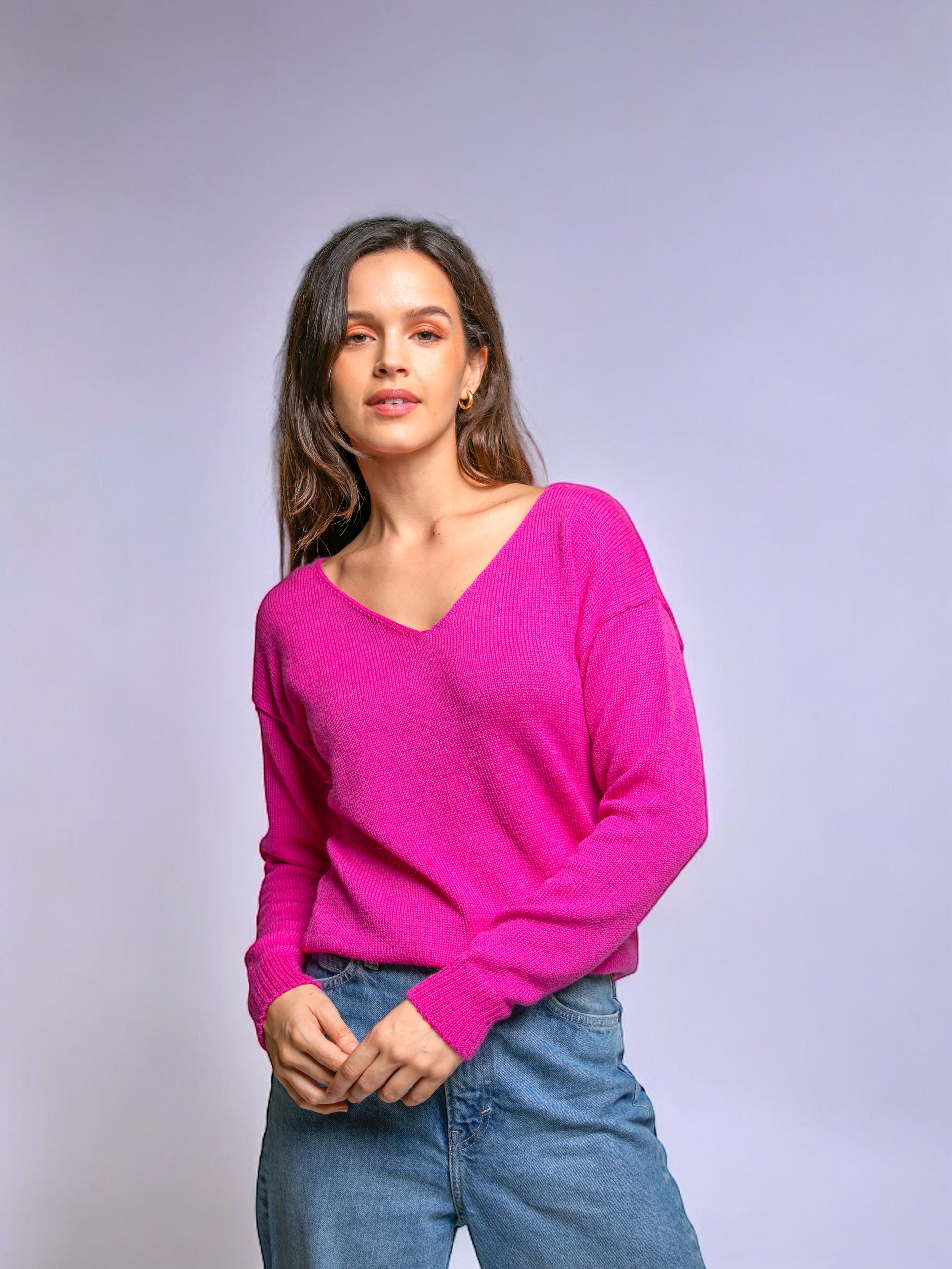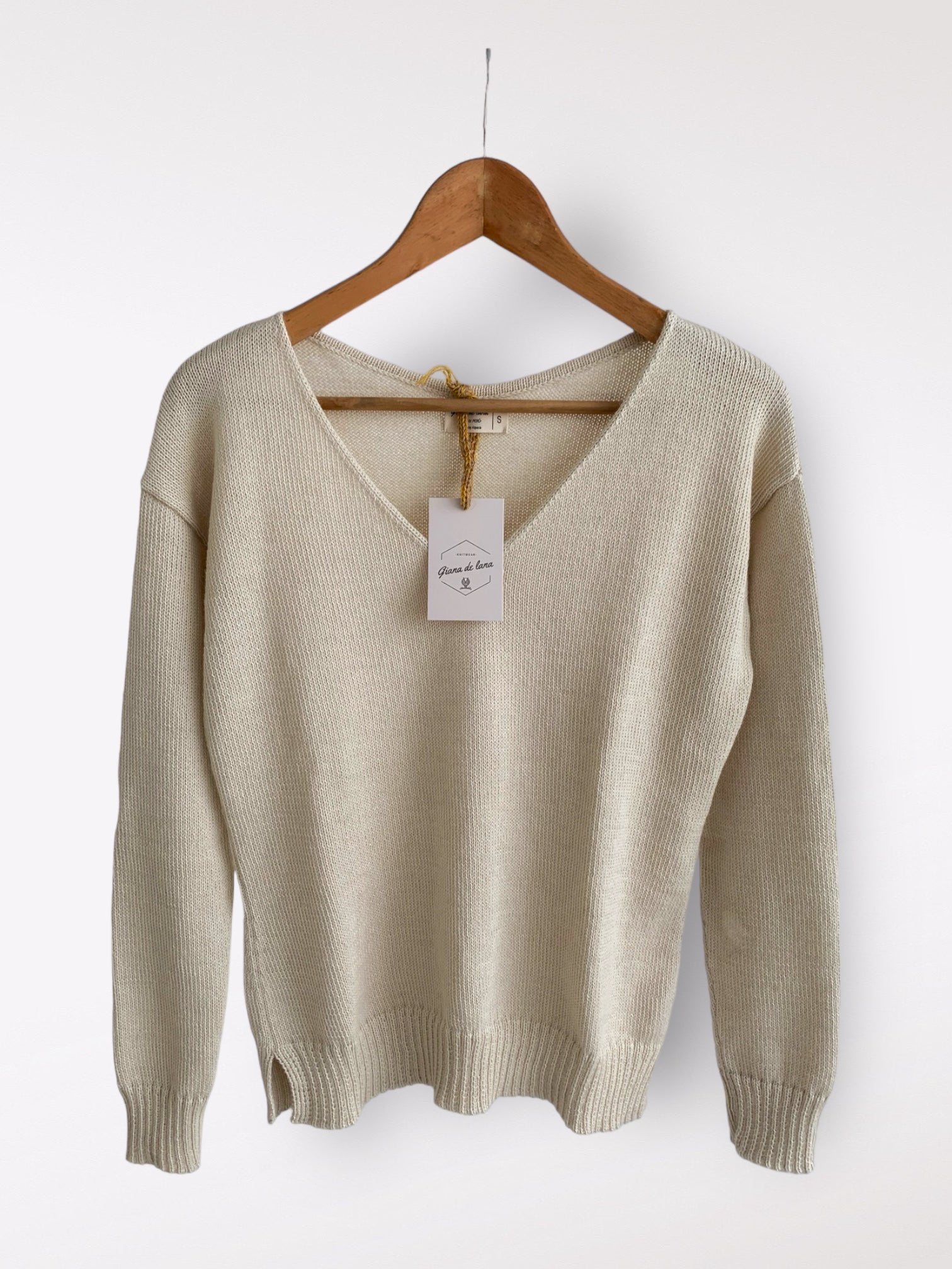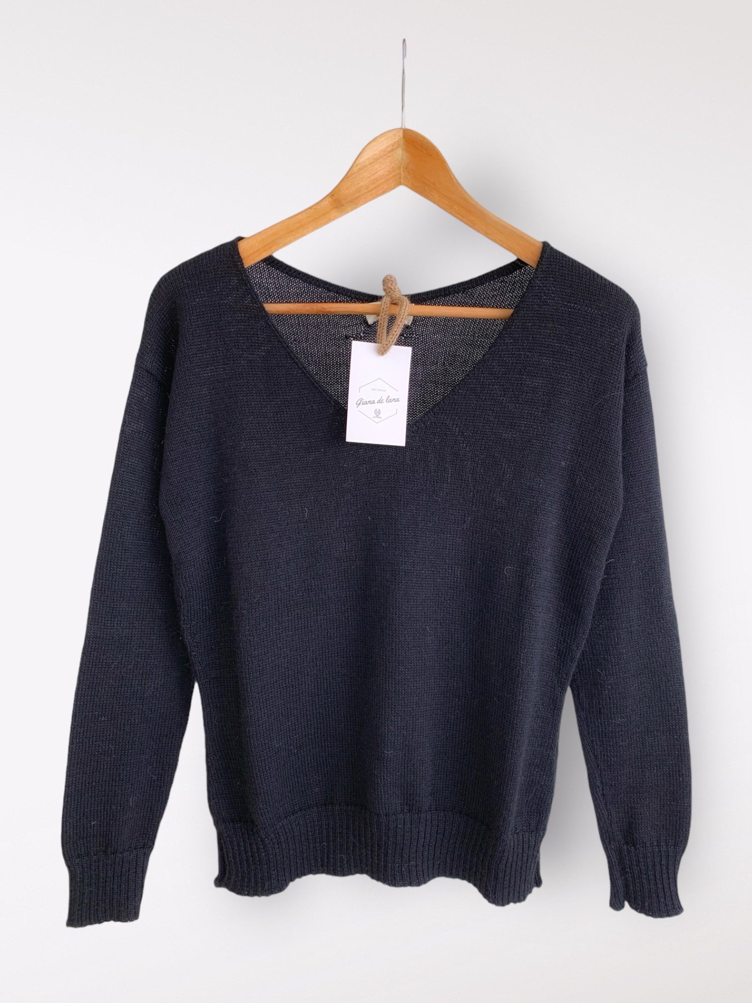 Es una prenda minimalista y elegante confeccionada en 100% Baby Alpaca.Su corte entallado y cuello en V realzan la feminidad y el estilo.