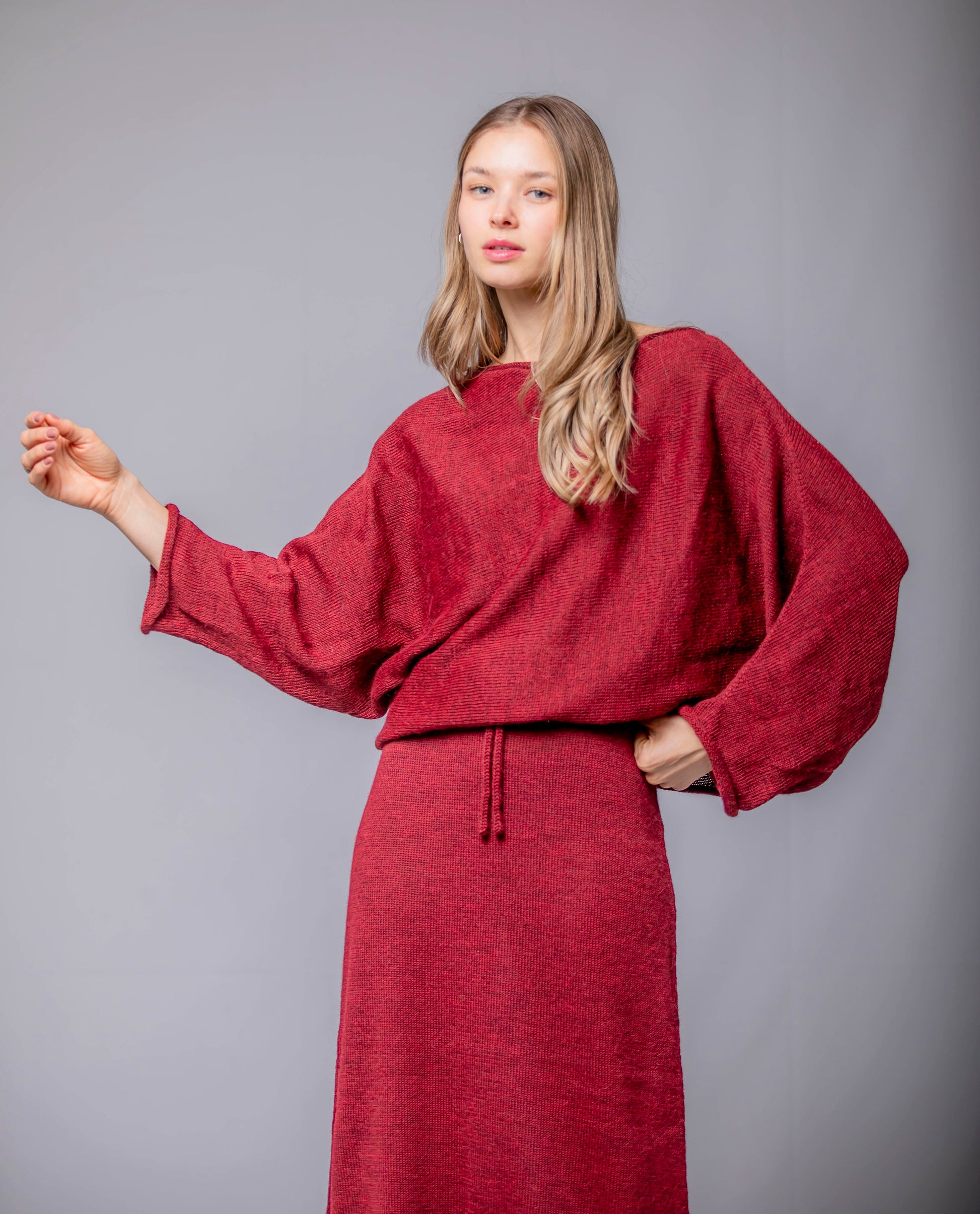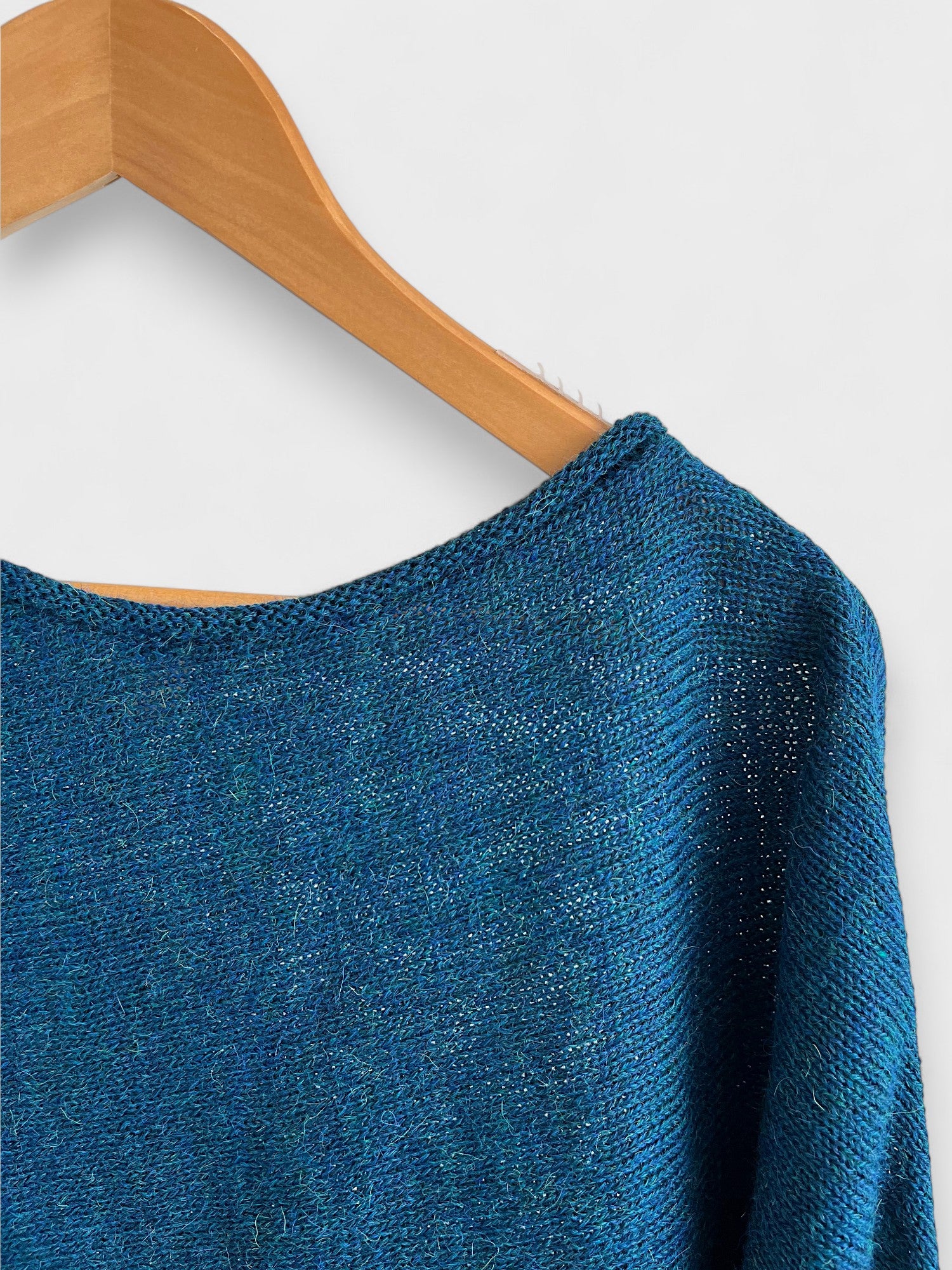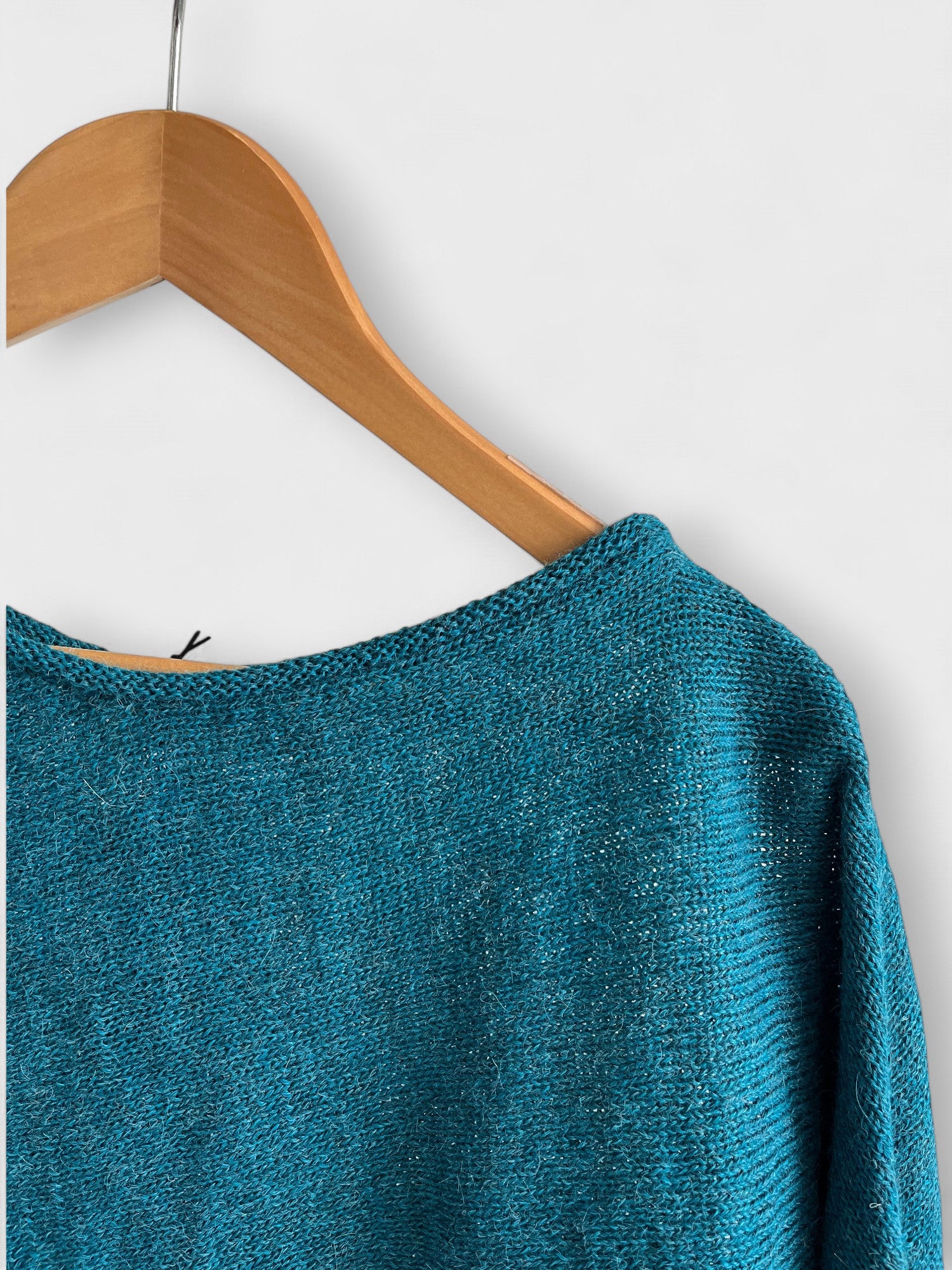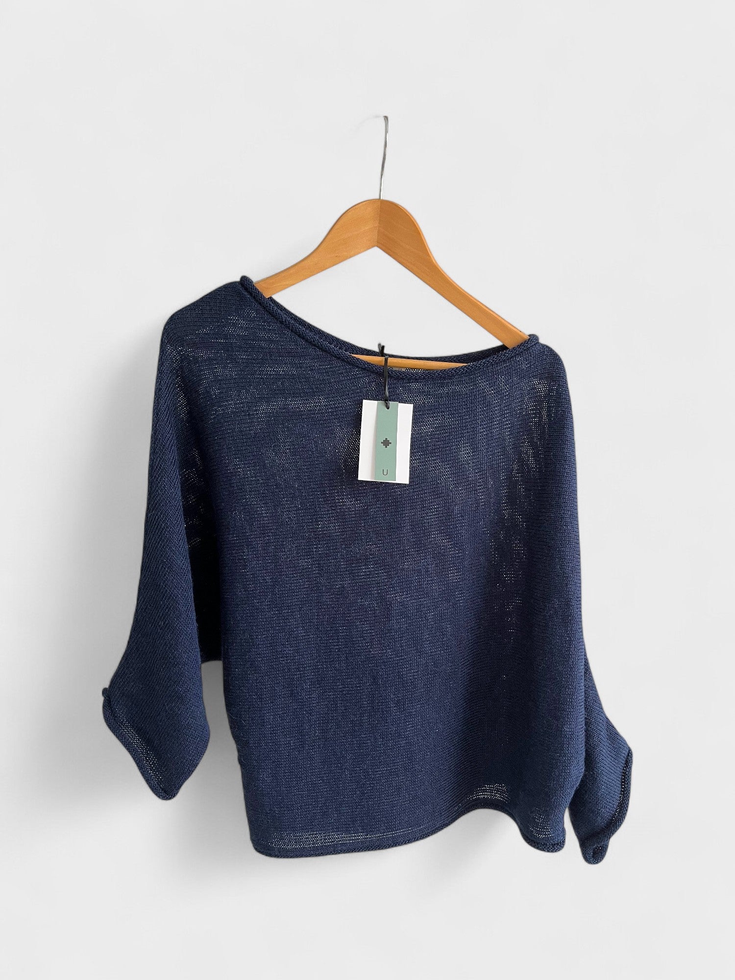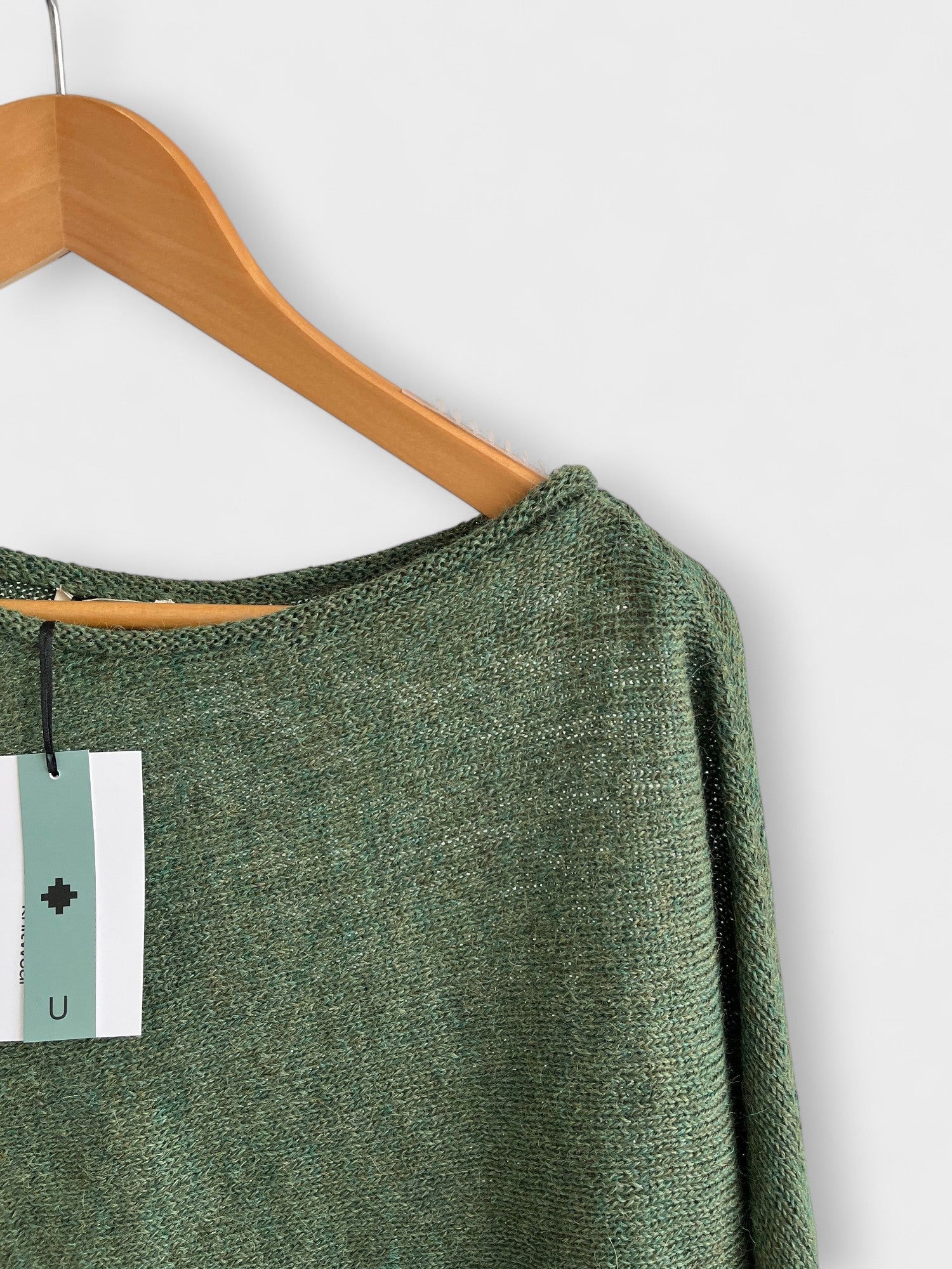 Confeccionada en 100% Baby Alpaca, Nova reinterpreta la silueta clásica con una asimetría sutil y encantadora. Una manga ligeramente más alta que la otra, el cuello abierto con caída lateral y detalles fruncidos en las mangas realzan su carácter singular.