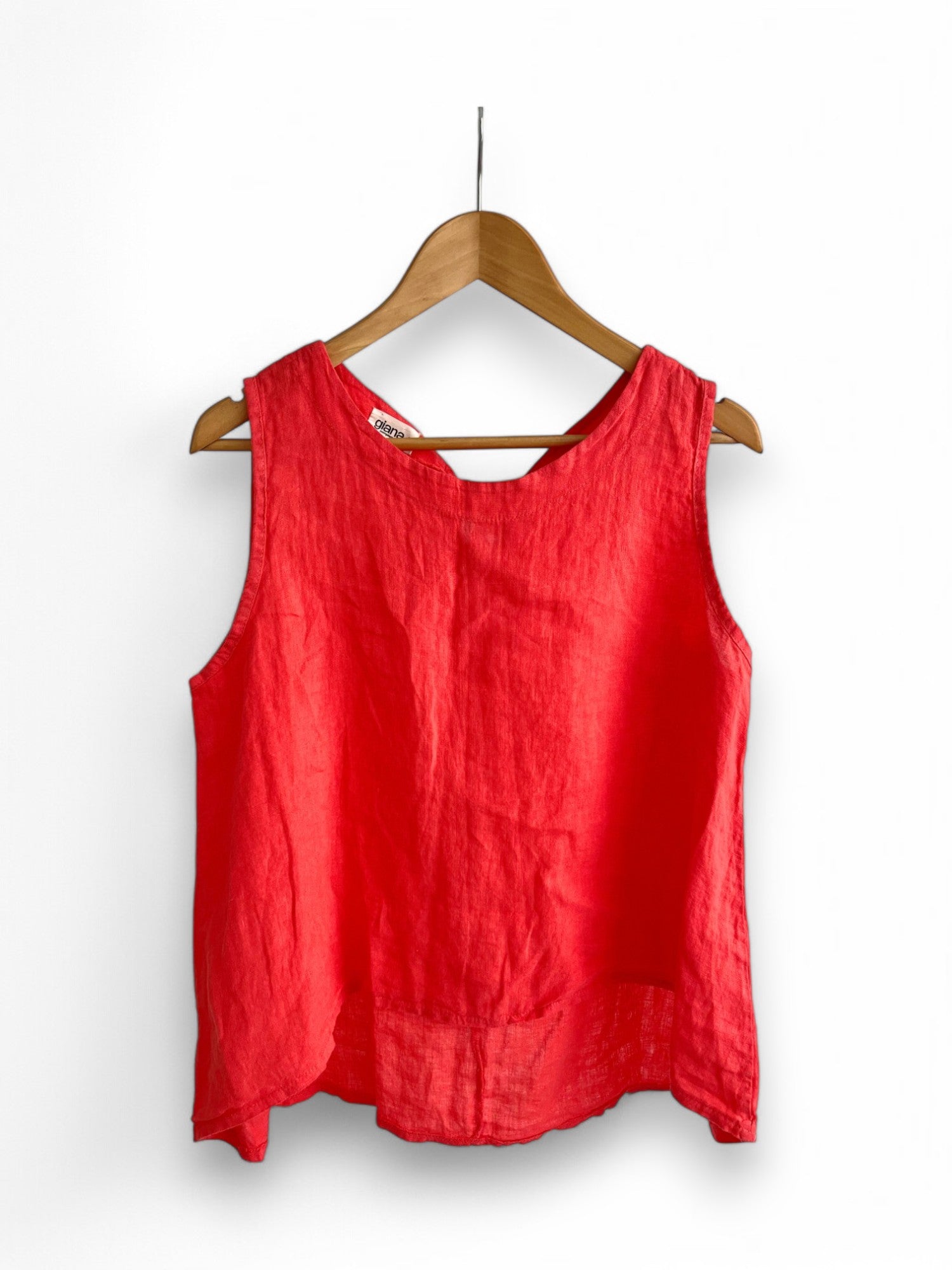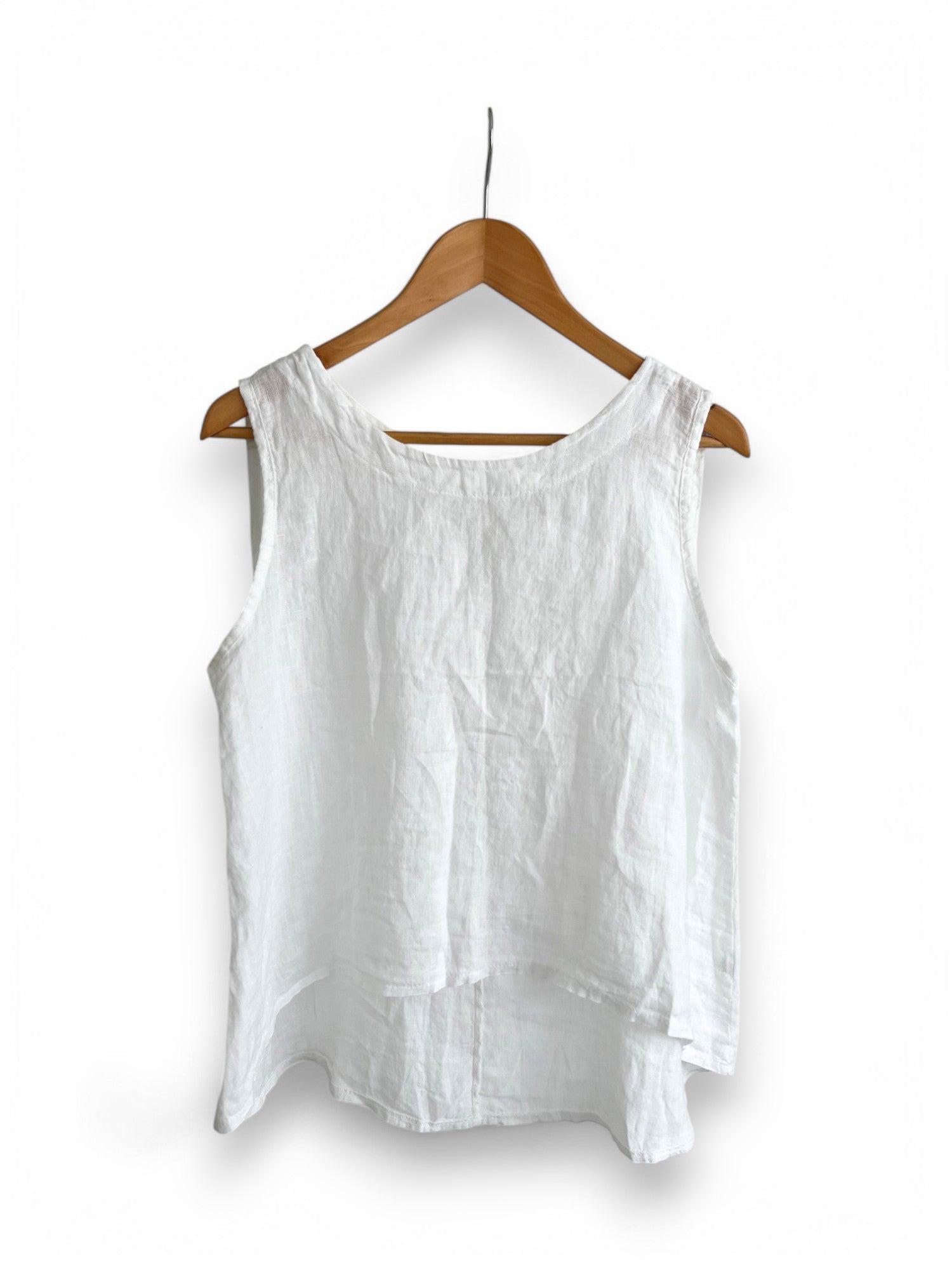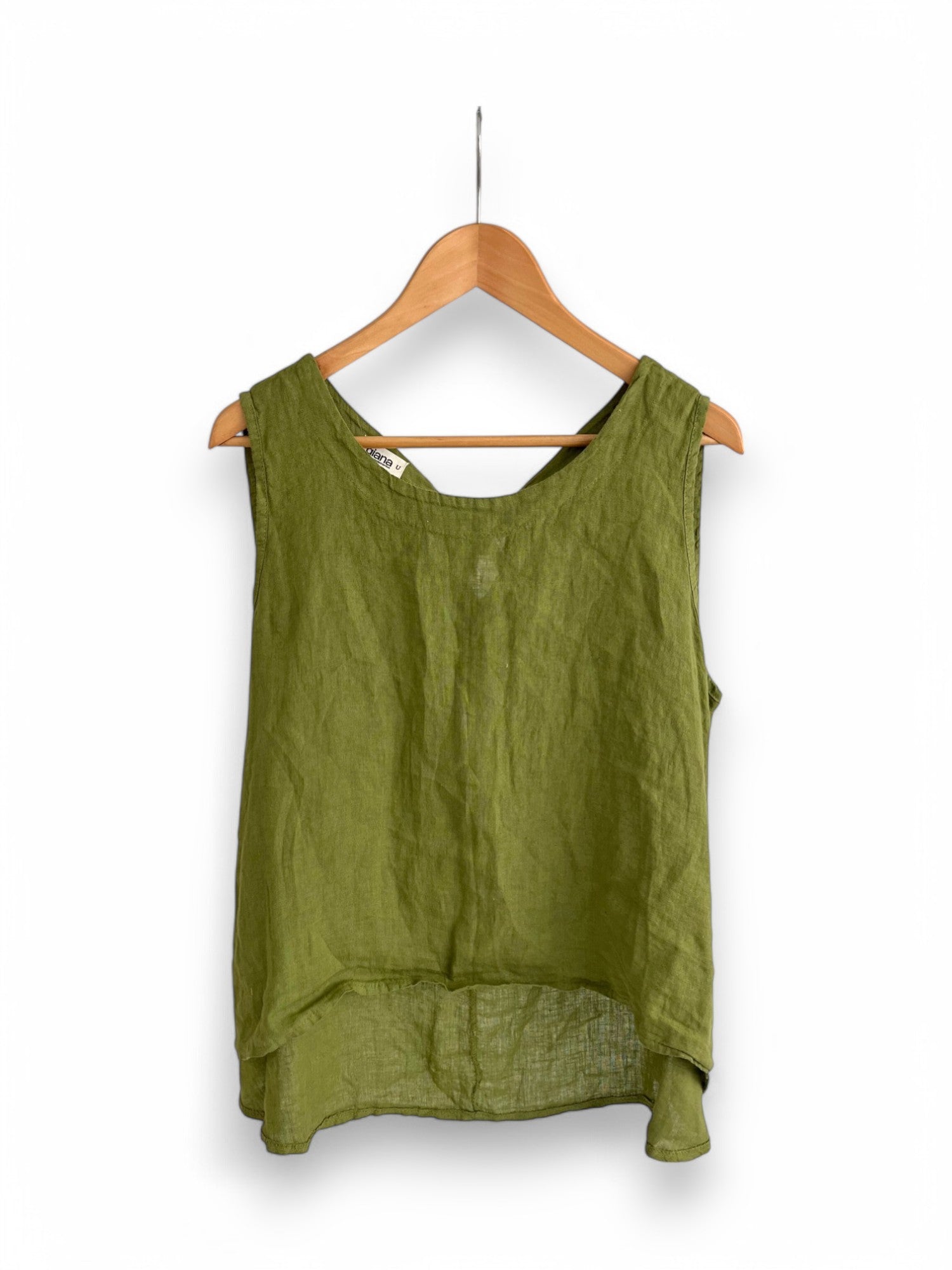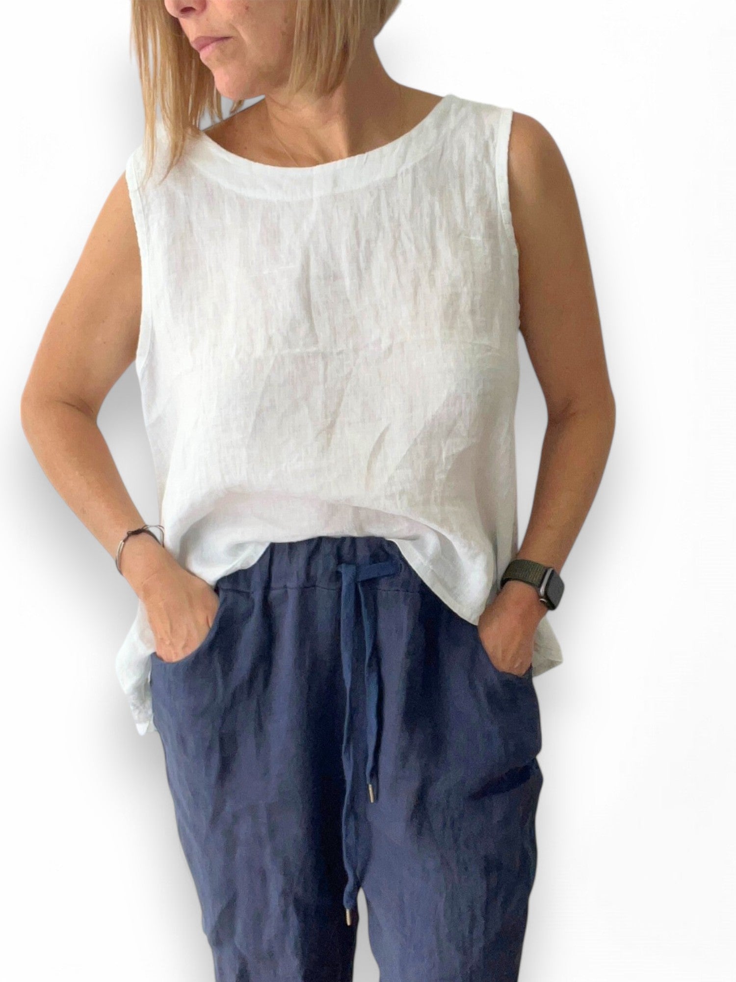 Ligero y lleno de matices, este top de lino confeccionado en Italia ha sido elegido por Giana Complementos por su equilibrio entre frescura, simplicidad y detalle. Su diseño más corto por delante y ligeramente más largo por detrás crea una silueta fluida y favorecedora, perfecta para combinar con prendas de talle alto o superponer con naturalidad.