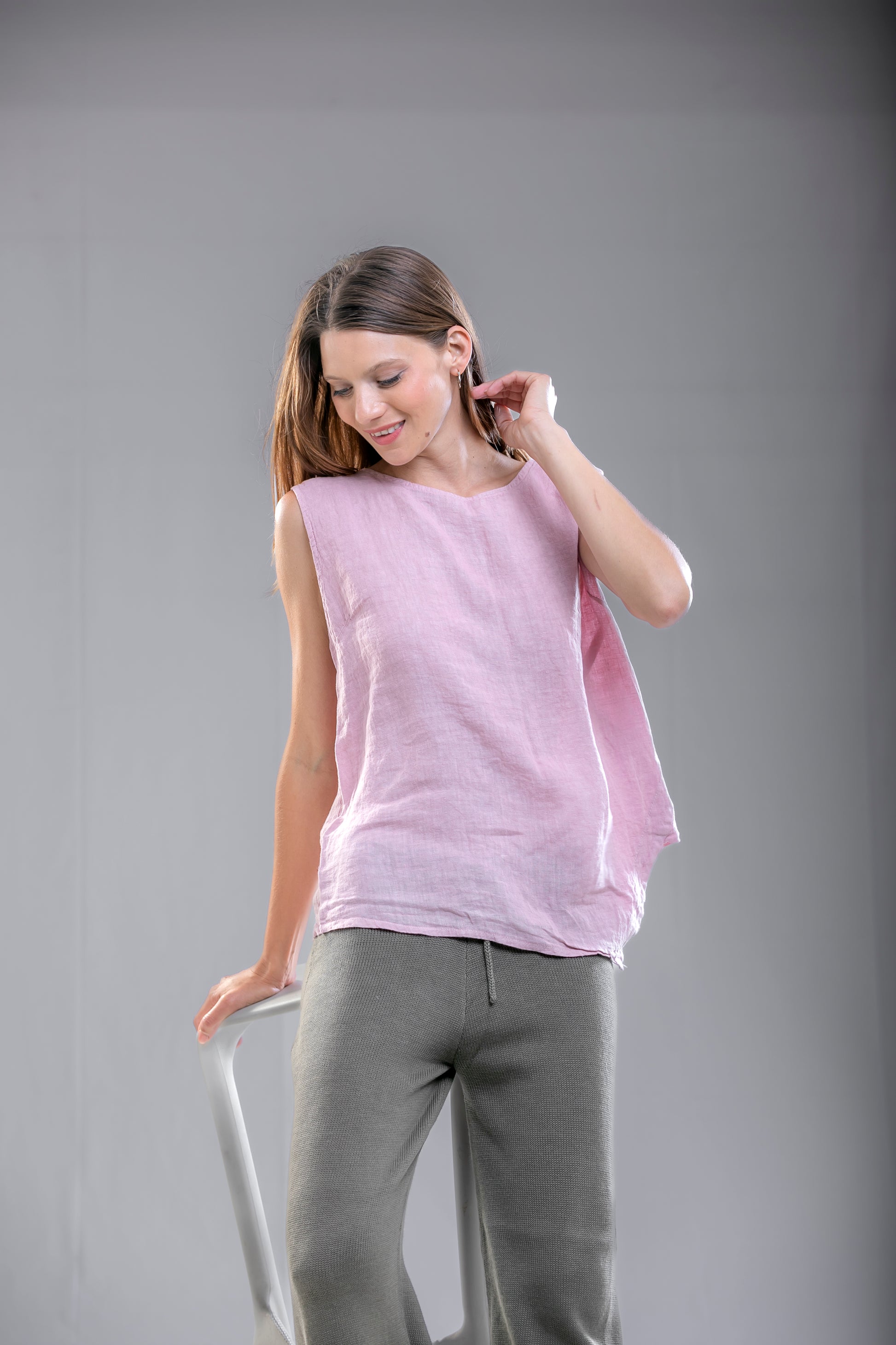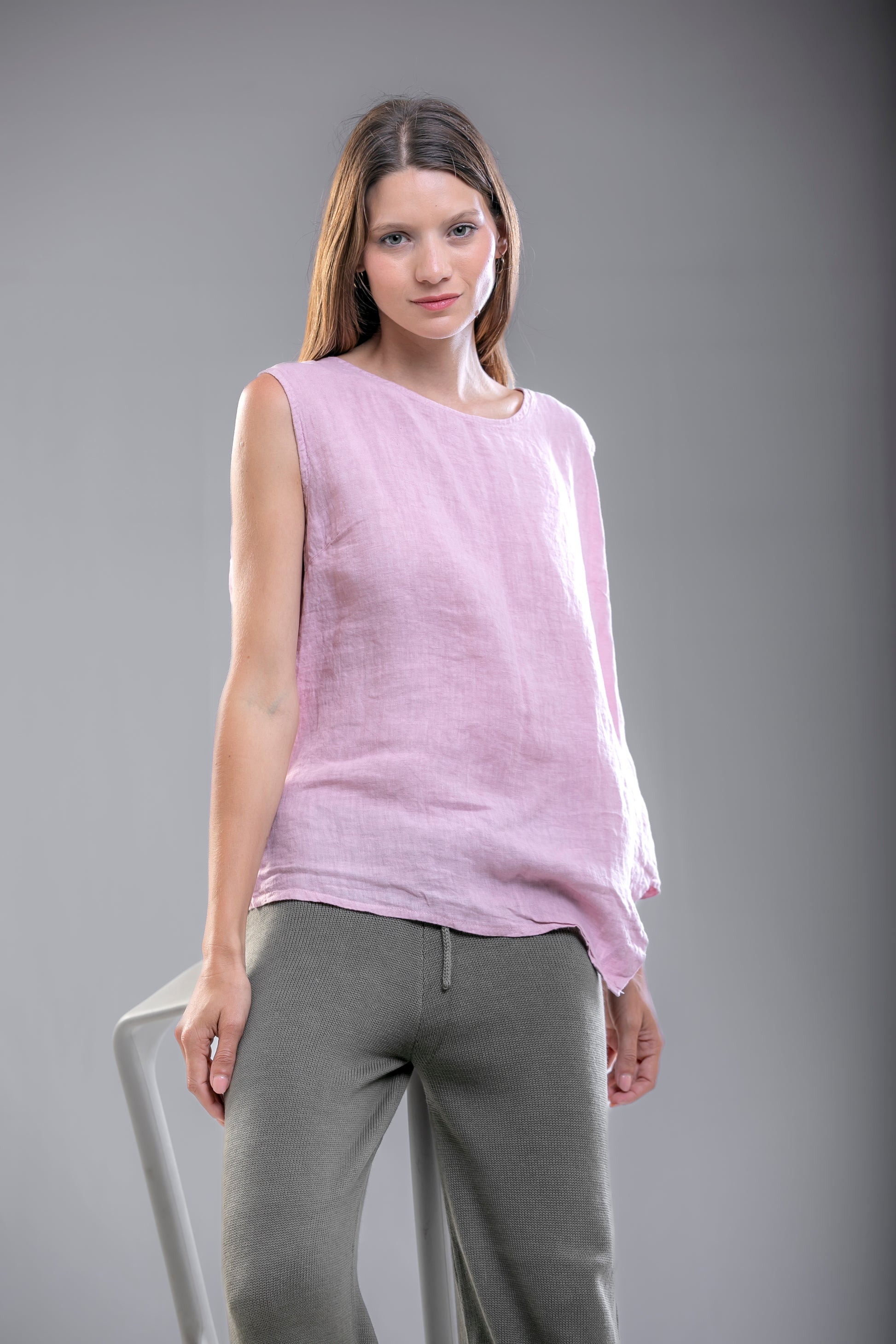 De espíritu libre y silueta amplia, nuestros tops de lino celebran la sencillez en su forma más auténtica.